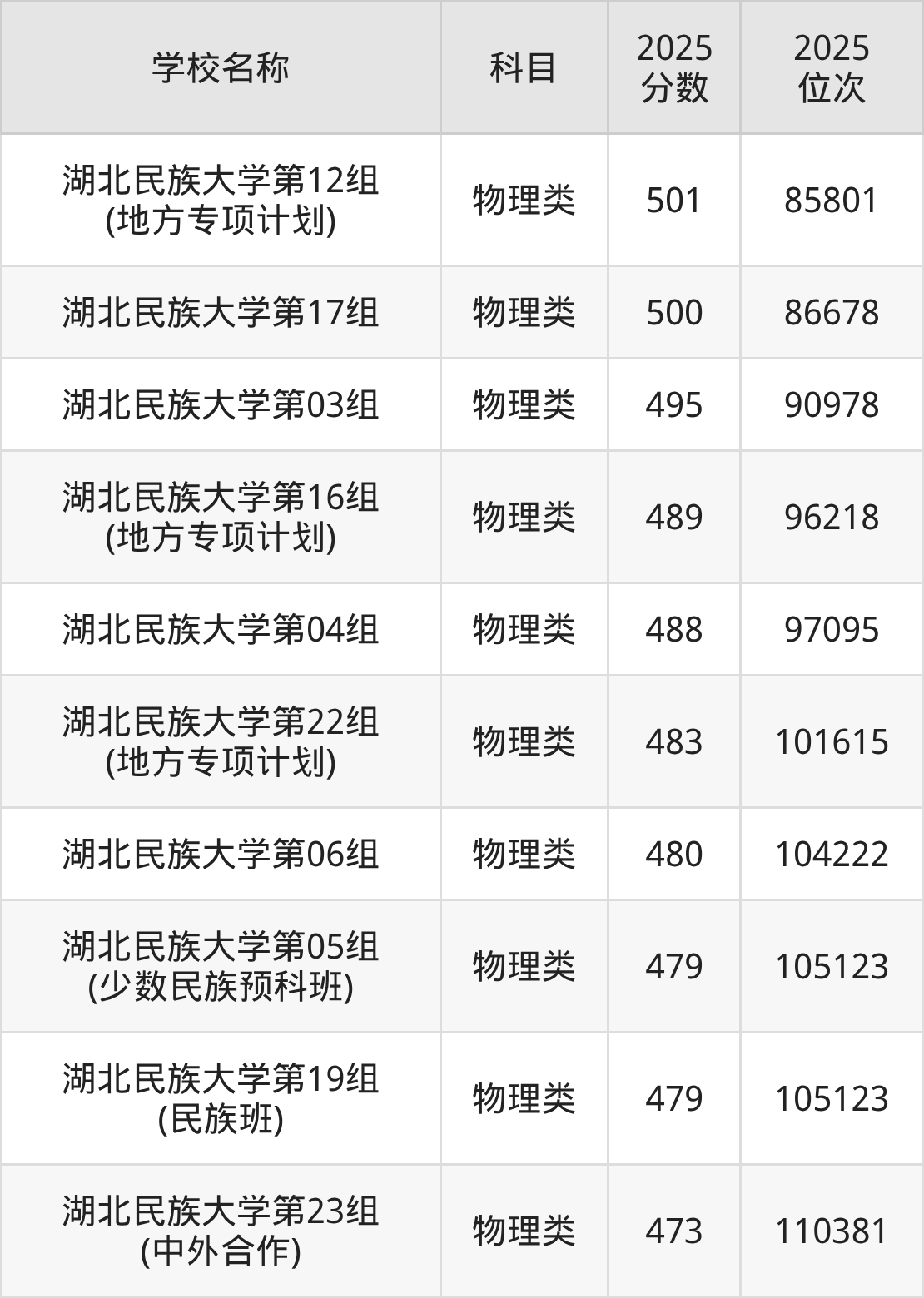根据2025年恩施土家族苗族自治州一本大学在湖北省物理类招生录取分数线来看,恩施土家族苗族自治州物理类收分最低的一本大学为湖北民族大学,录取分数线为473分。