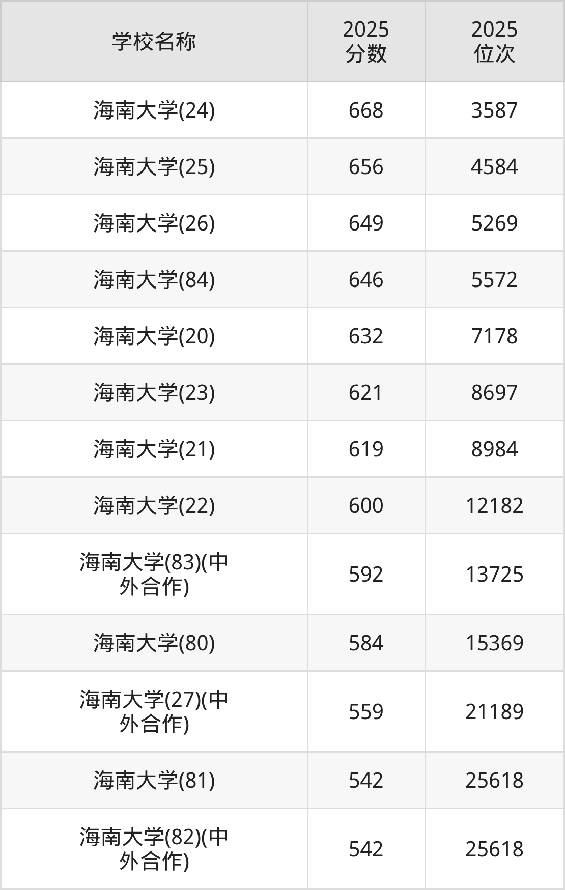 下文为2025年海南省211大学在海南录取分数线和位次排名表,供大家参考: