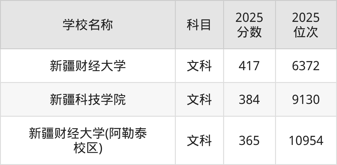 下文为2025年新疆维吾尔自治区二本财经大学在新疆文科录取分数线和位次排名表,供大家参考: