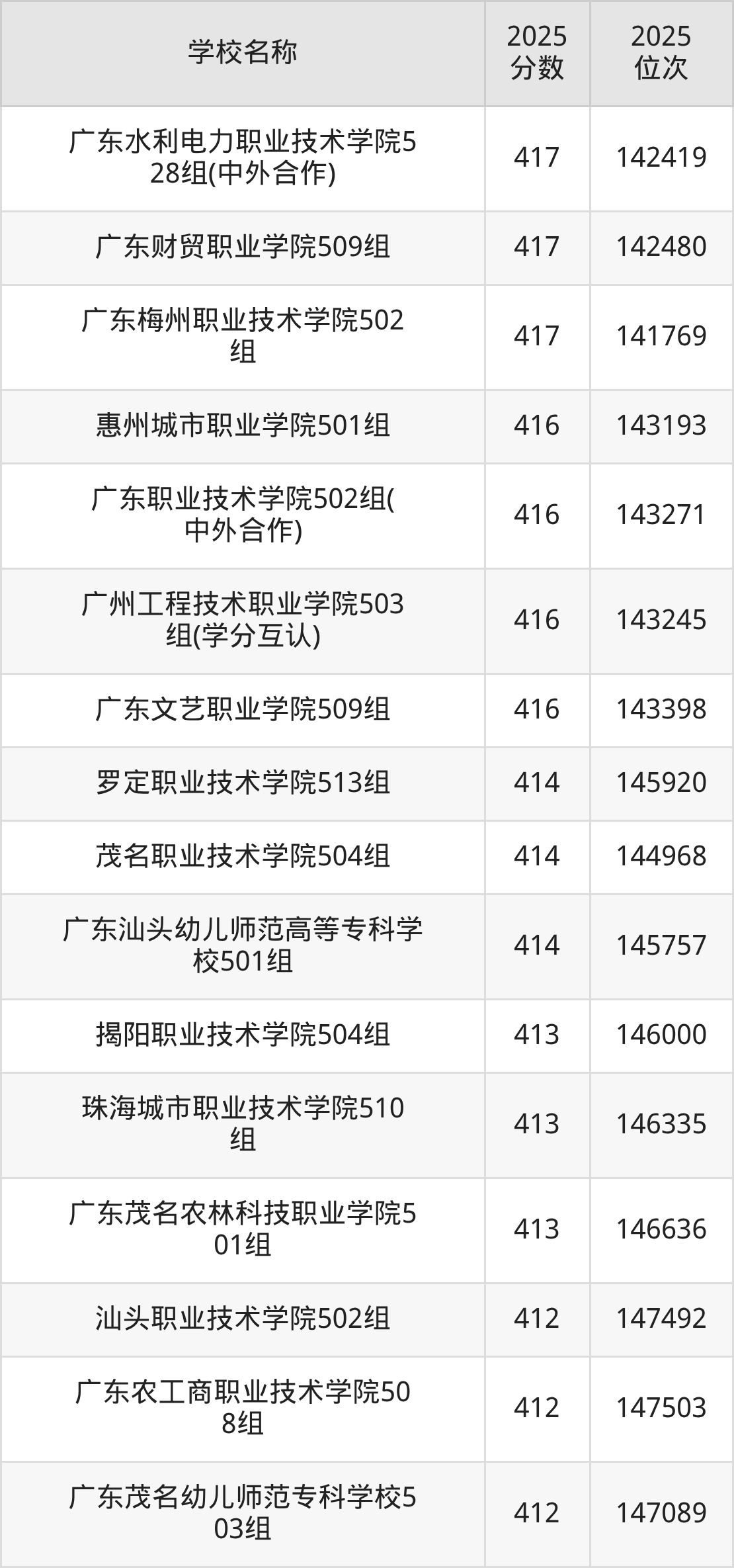 | 147 | 广东工贸职业技术学院 |