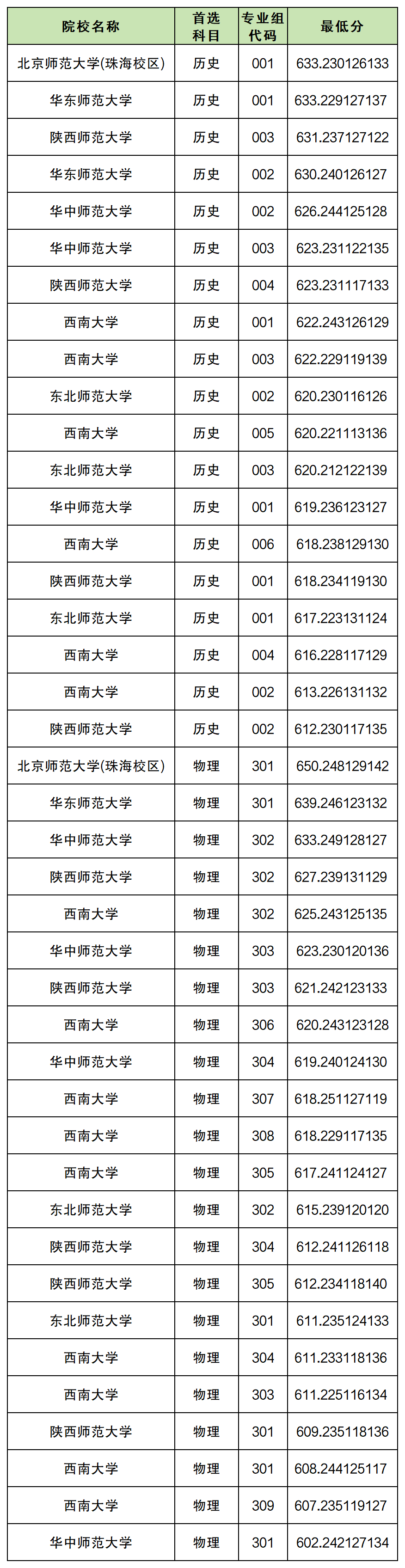 历史类:最低612.230117135分,对应陕西师范大学002组。