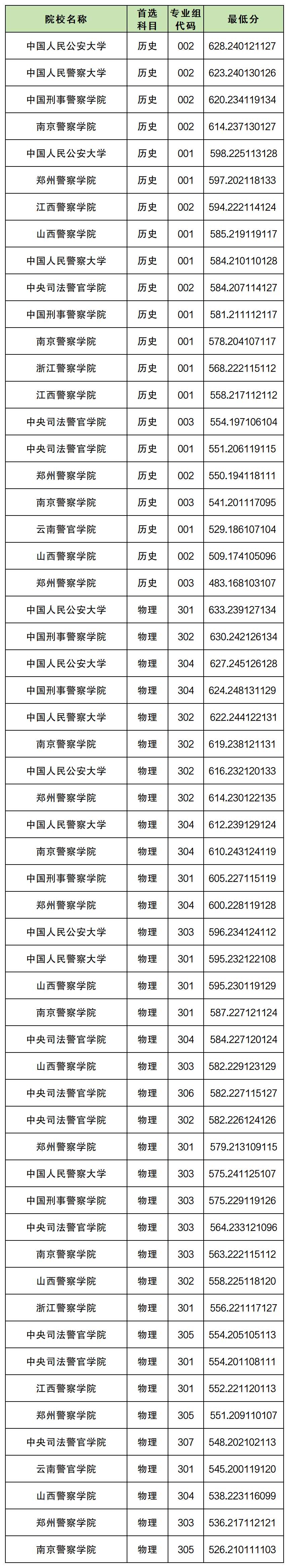 历史类:最低483.168103107分,对应郑州警察学院003组。