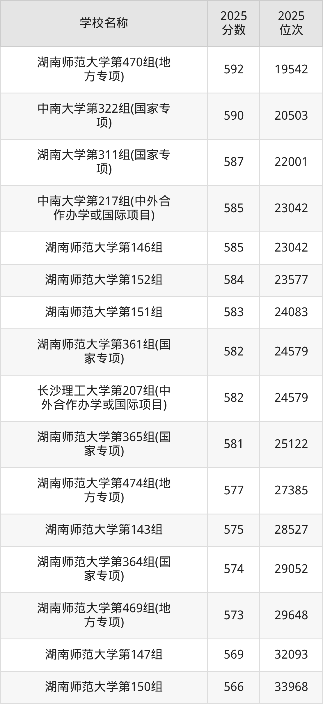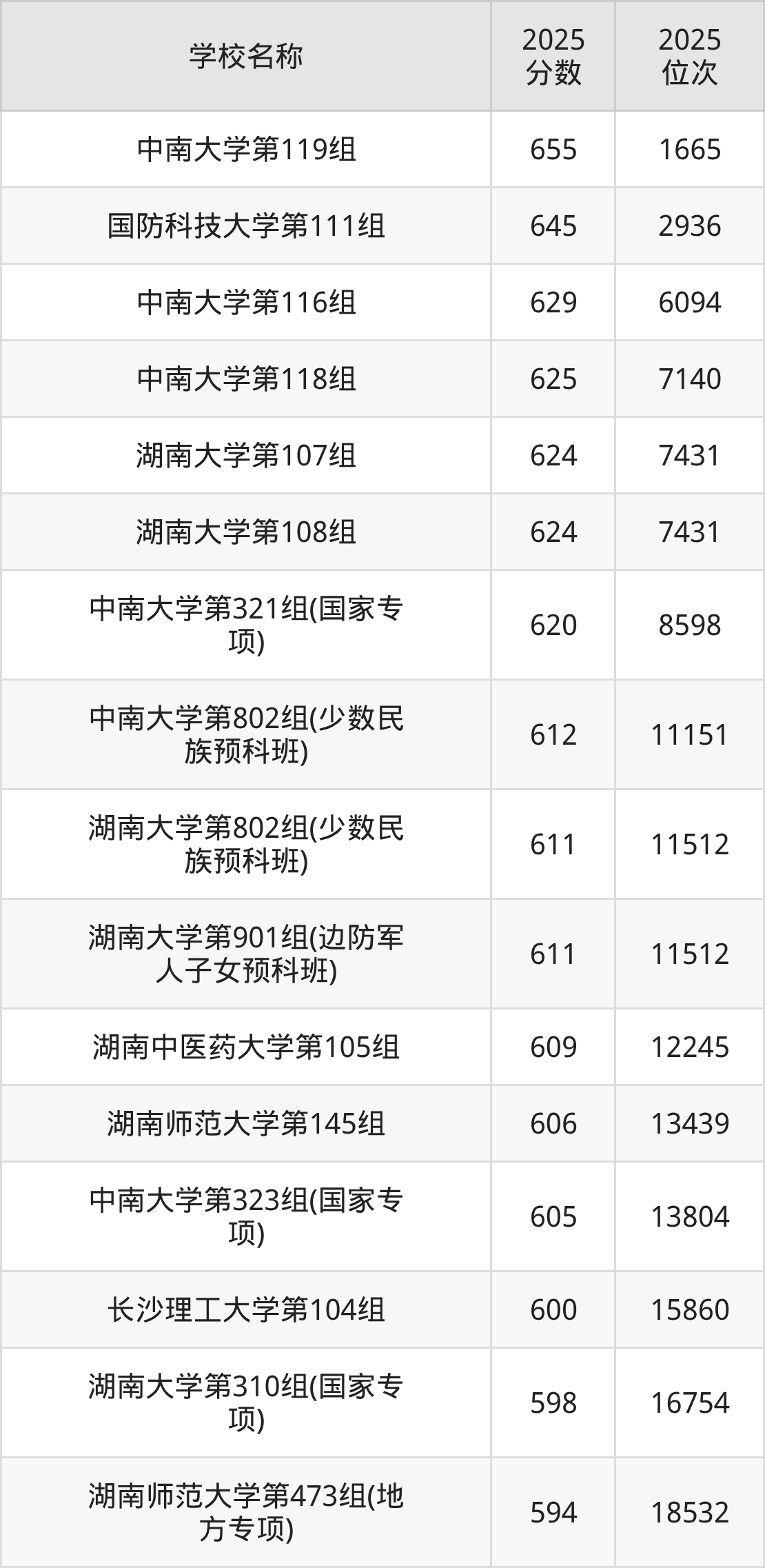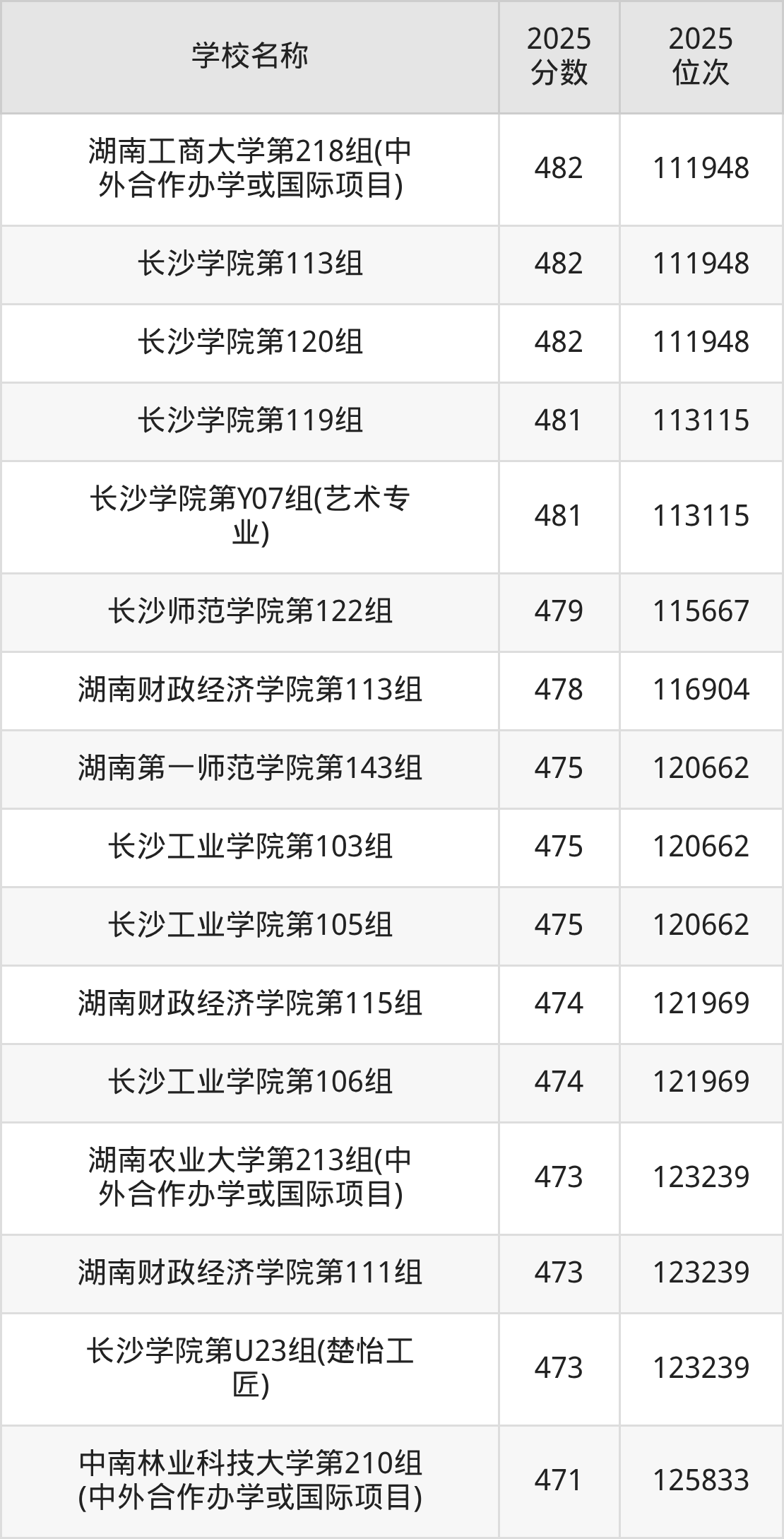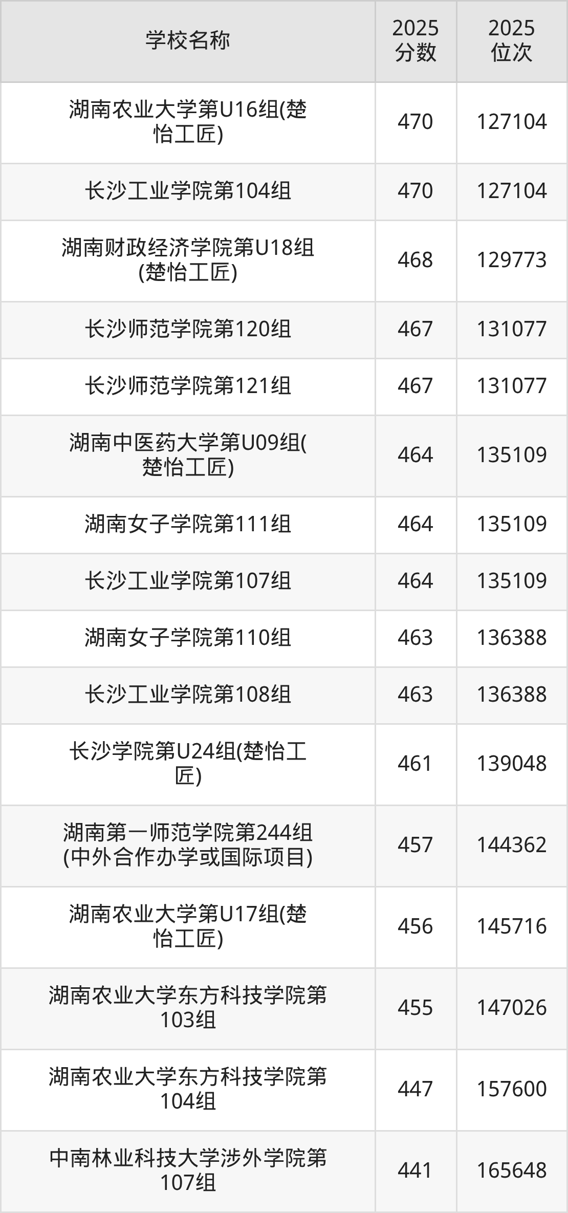下文为2025年长沙市本科大学在湖南物理类录取分数线和位次排名表,供大家参考: