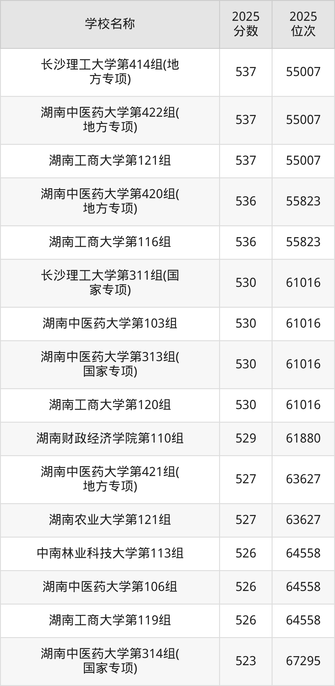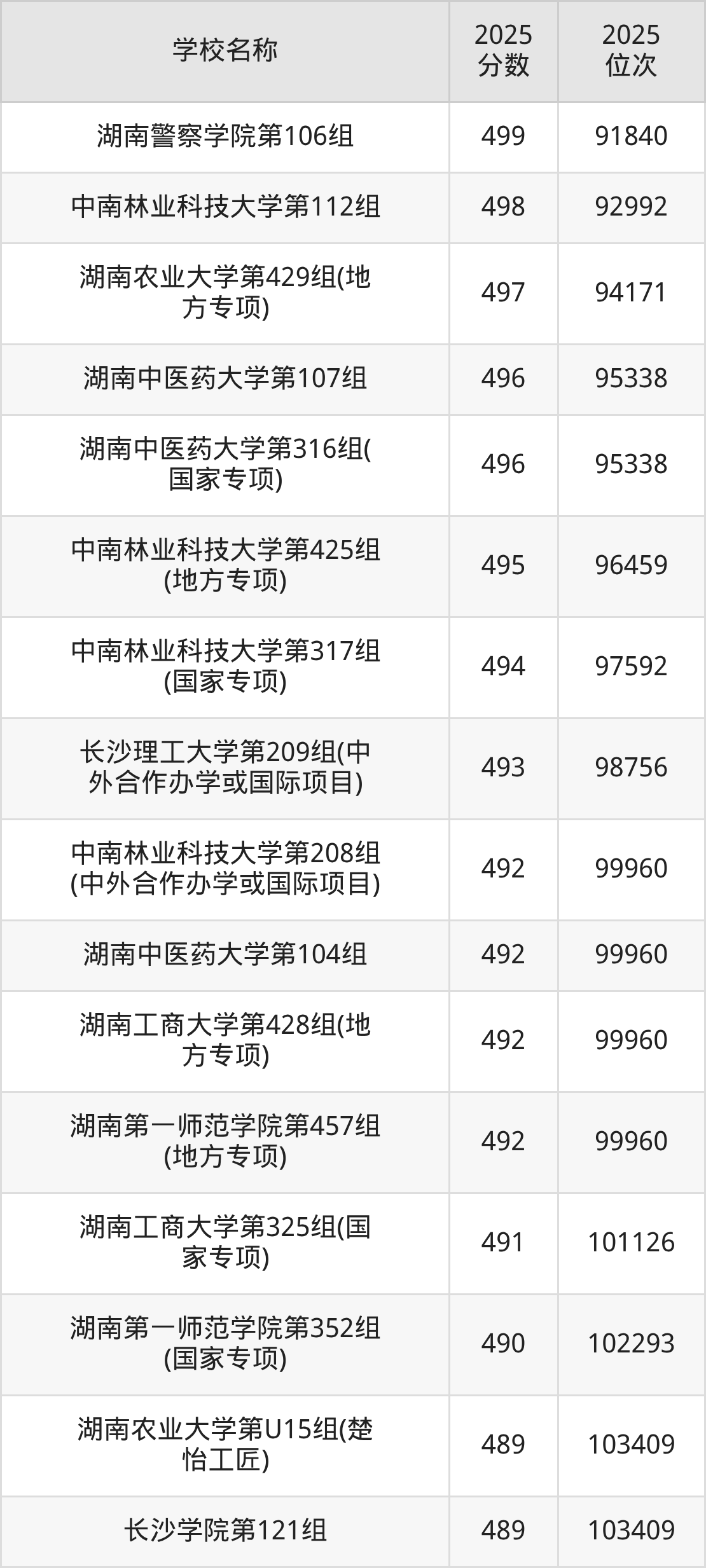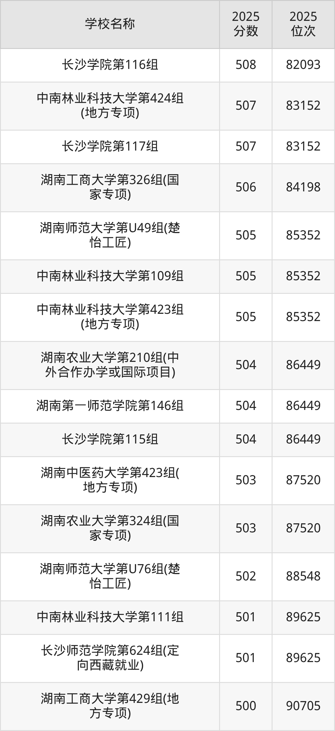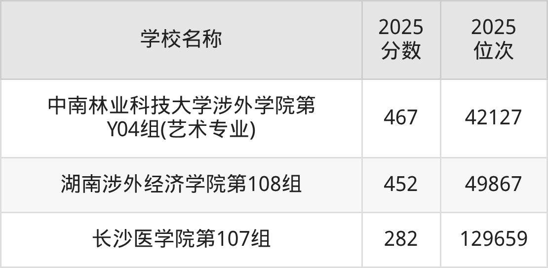 下文为2025年长沙市本科大学在湖南物理类录取分数线和位次排名表,供大家参考: