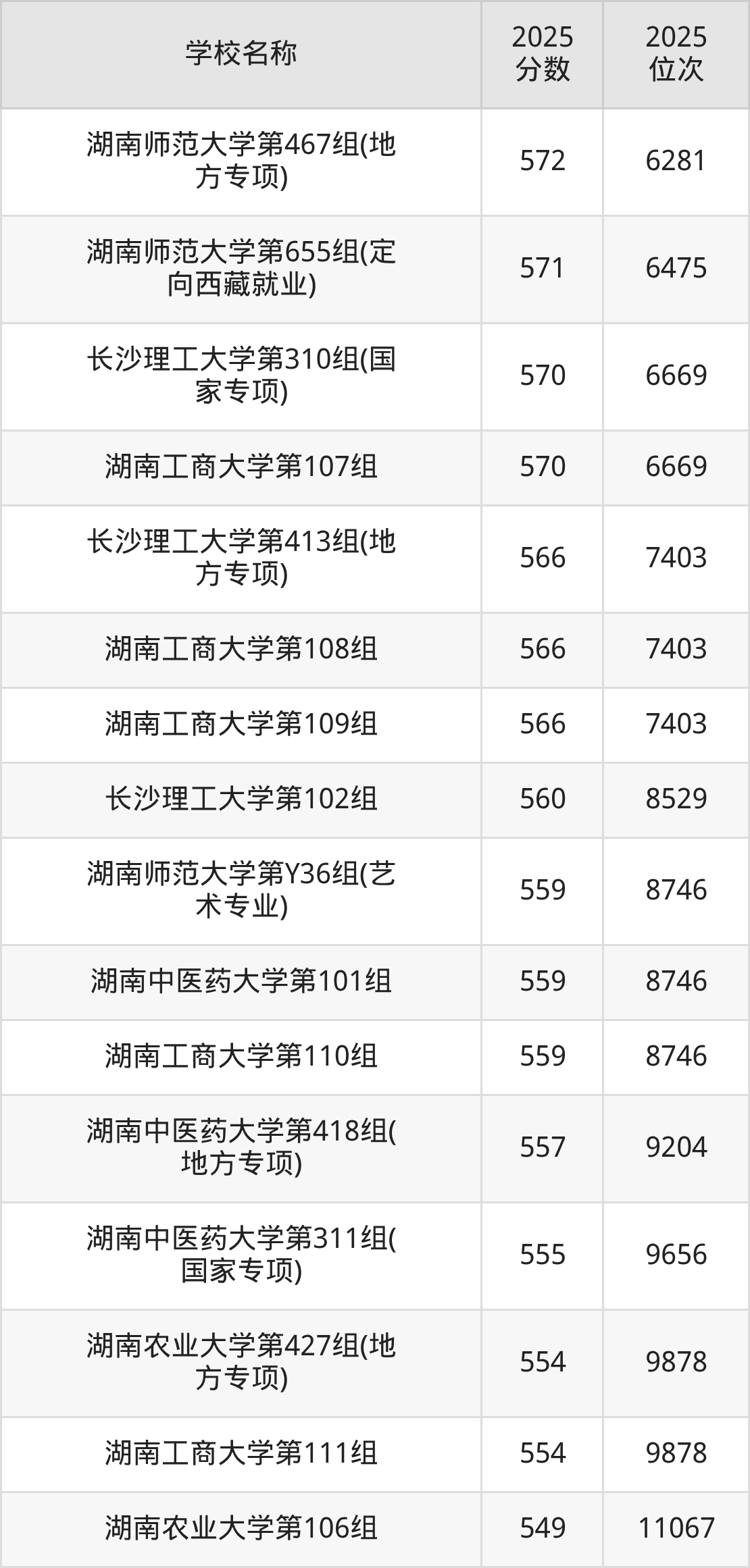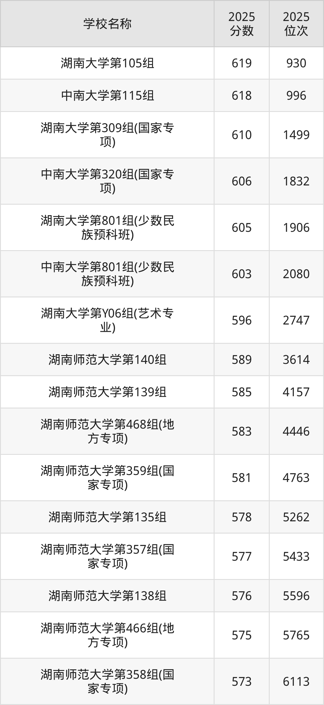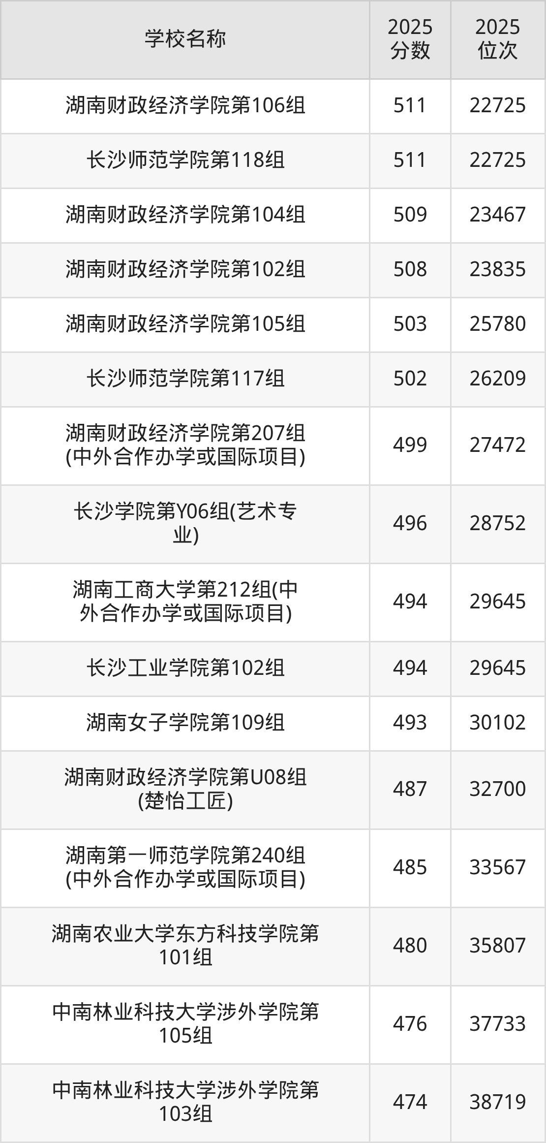 下文为2025年长沙市本科大学在湖南历史类录取分数线和位次排名表,供大家参考: