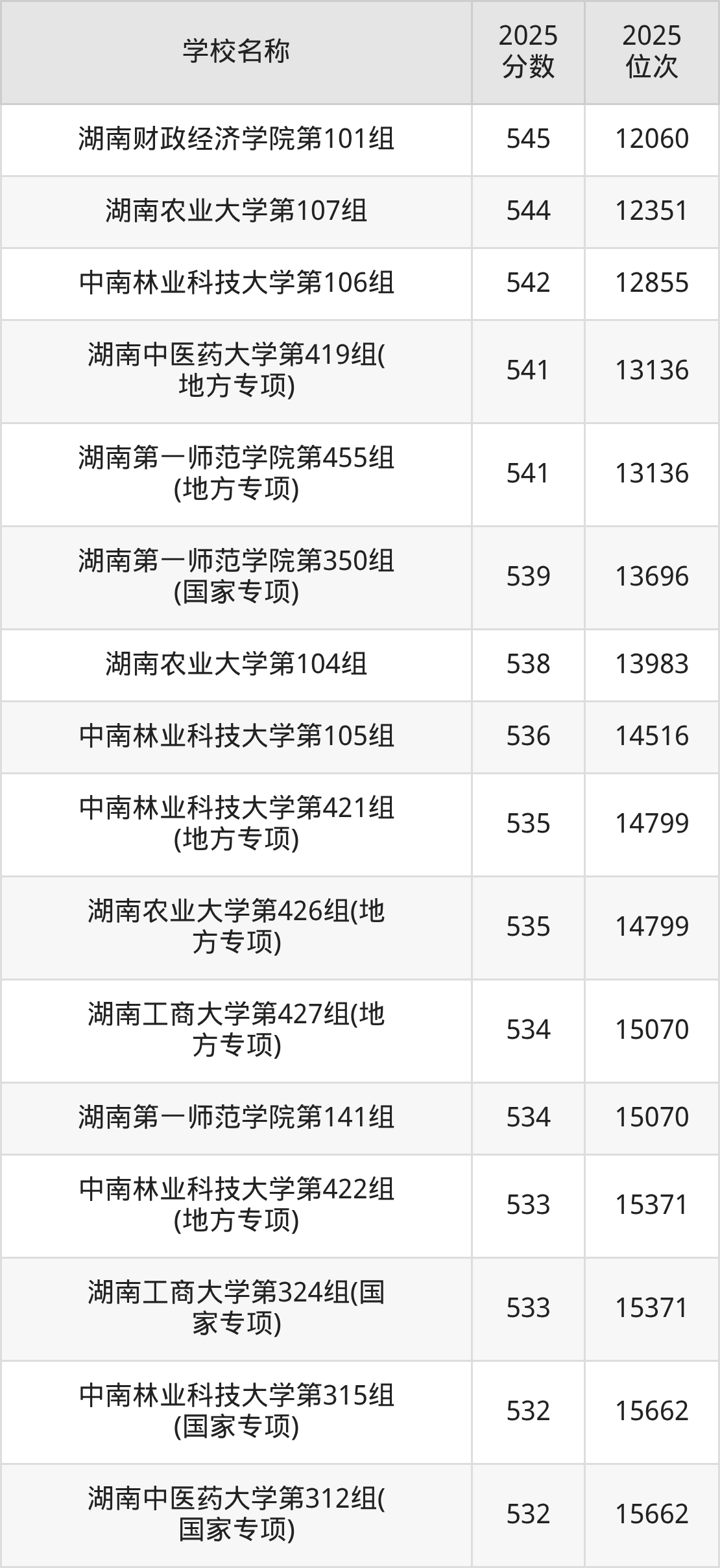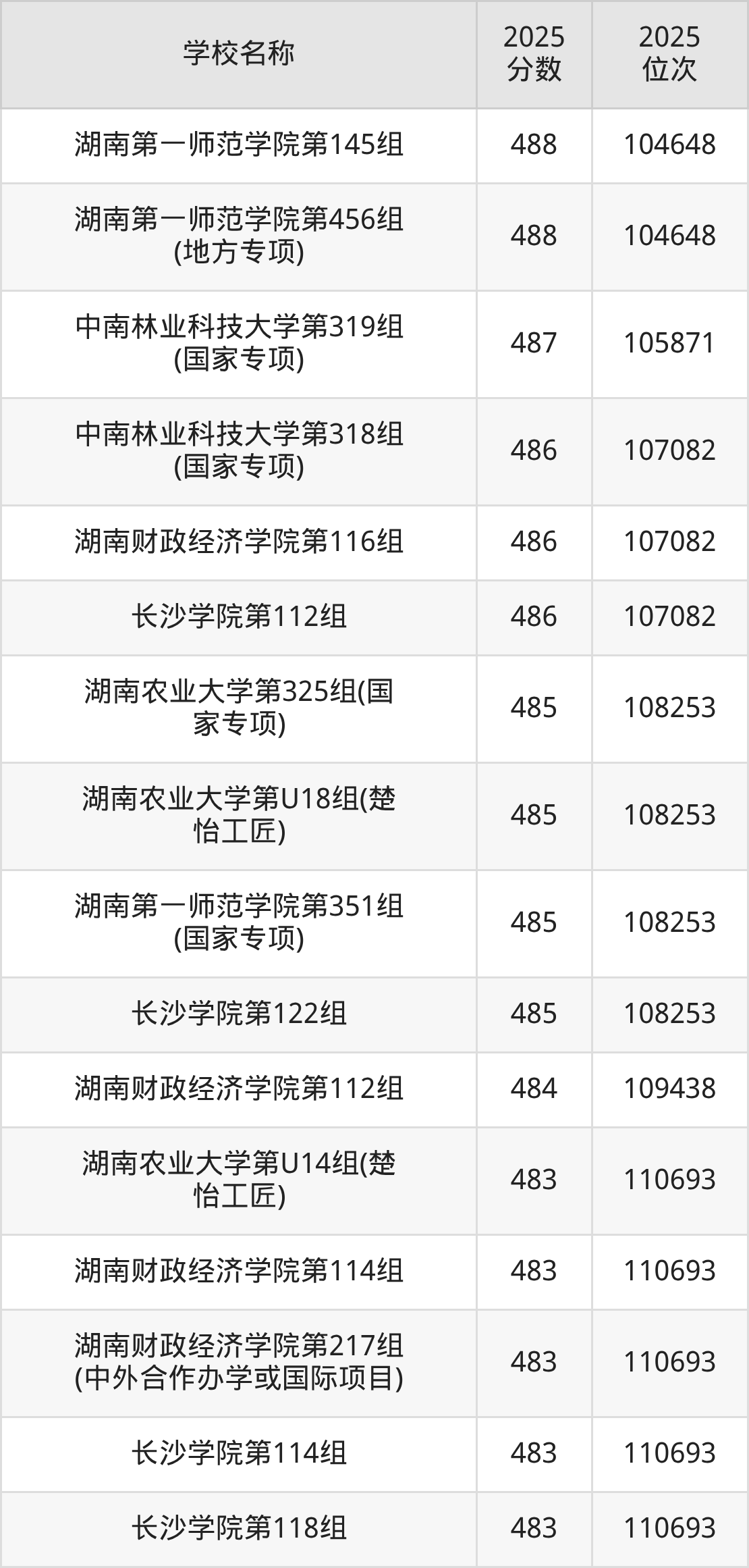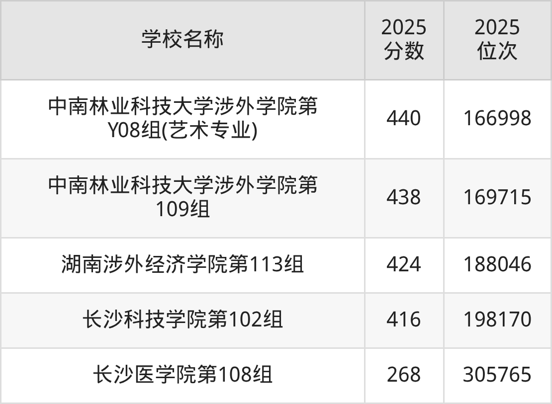 下文为2025年长沙市本科大学在湖南历史类录取分数线和位次排名表,供大家参考: