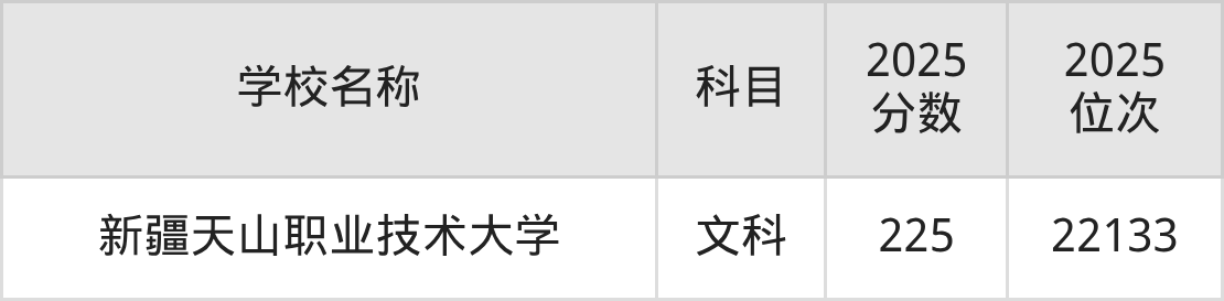 下文为2025年乌鲁木齐市本科大学在新疆文科录取分数线和位次排名表,供大家参考:
