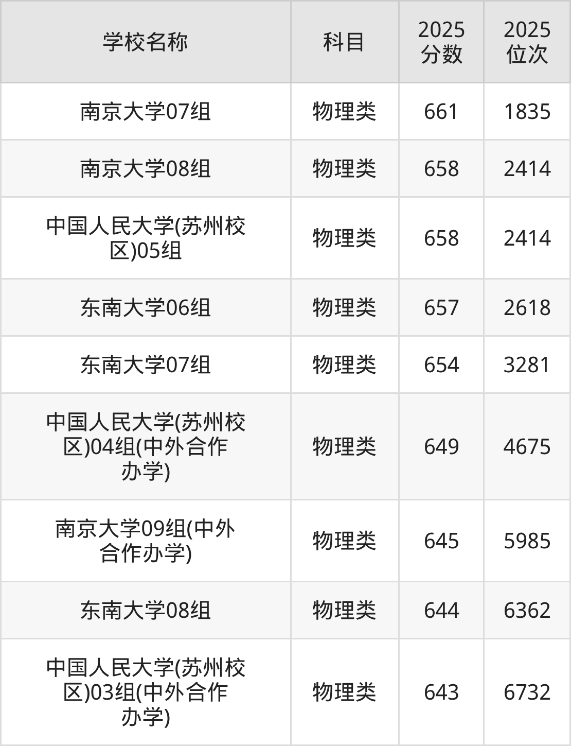 下文为2025年江苏省985大学在江苏物理类录取分数线和位次排名表,供大家参考: