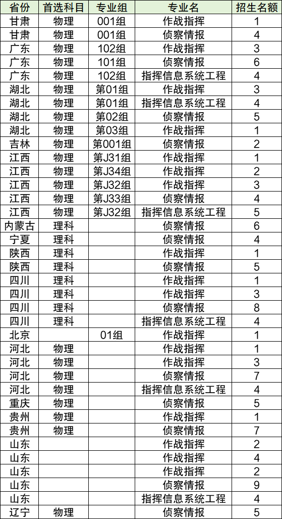 2024年陆军特种作战学院全国招生人数135人,其中在山东地区招生数量最多、在北京地区招生数量最少。下面是部分地区具体招生计划人数: