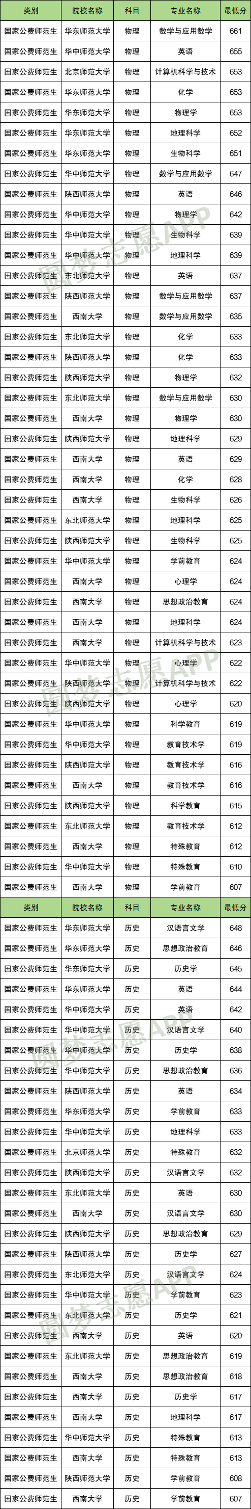 公费师范生:主要由教育部直属的六所师范大学培养,招生面向全国。