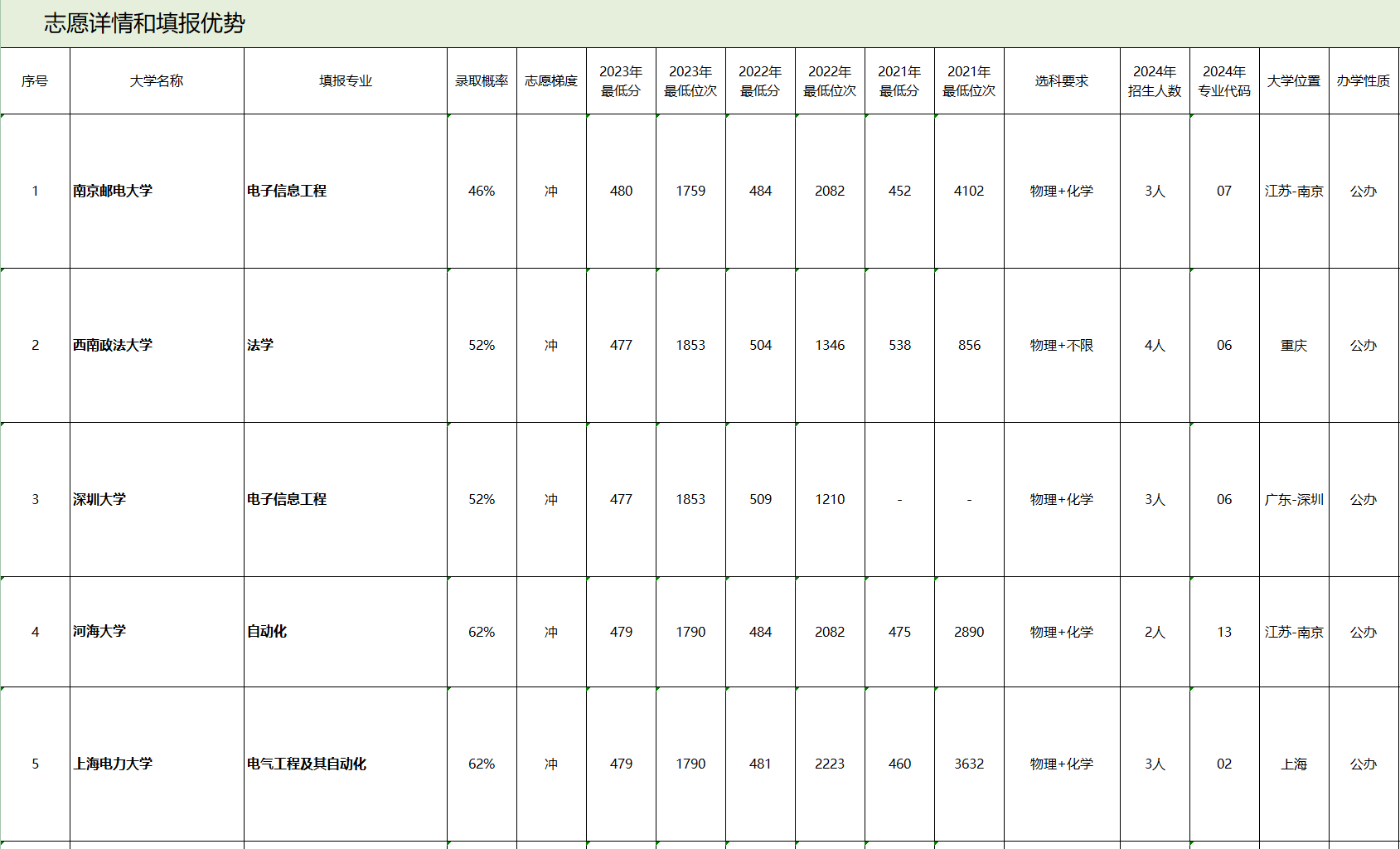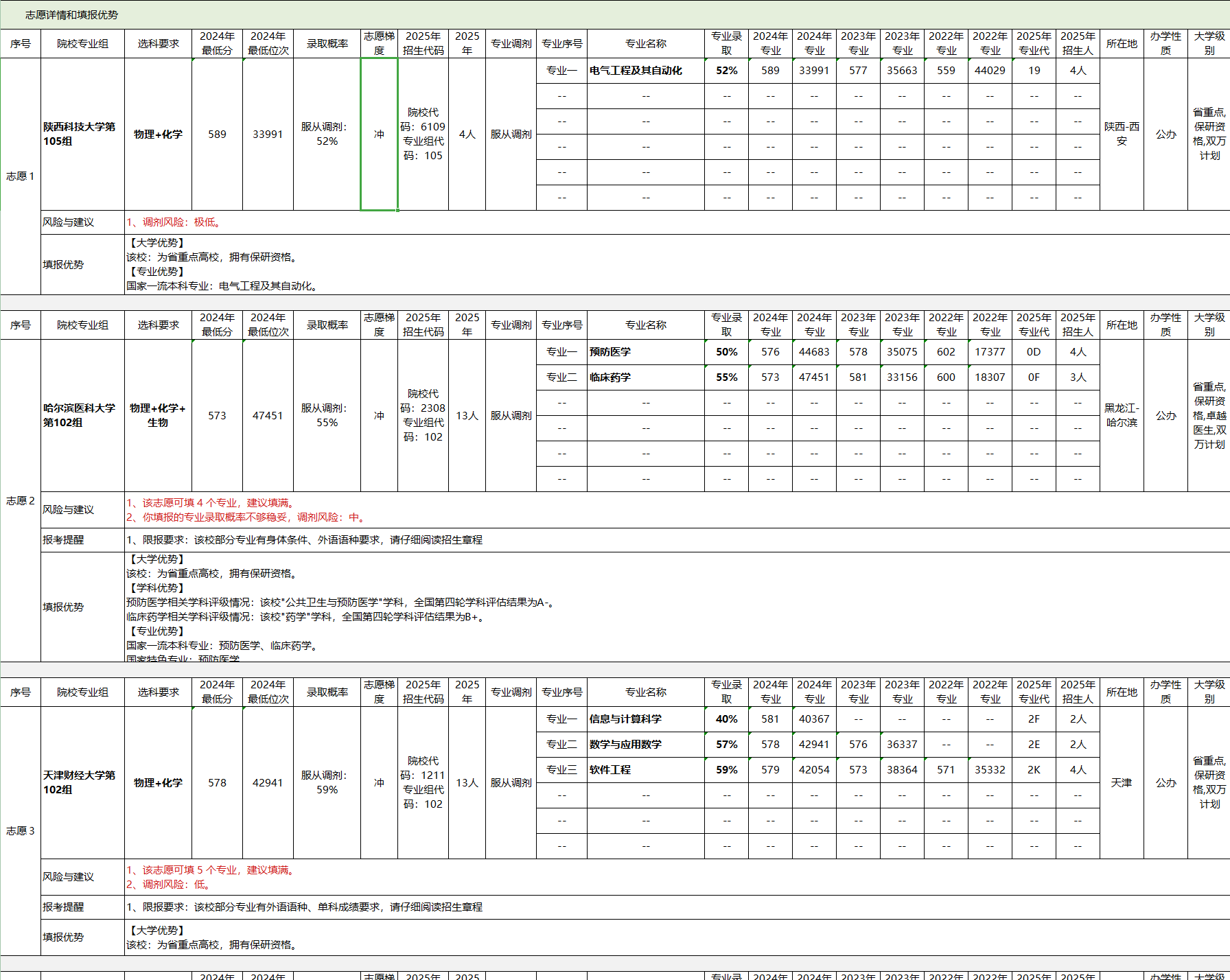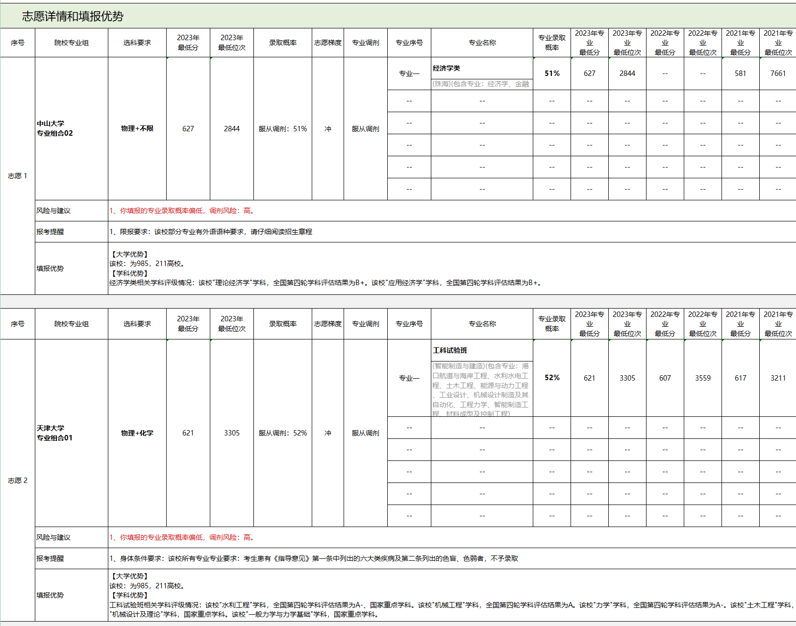 以下是八省联考省份已填好的志愿模板样例,供大家参考。