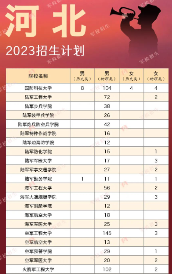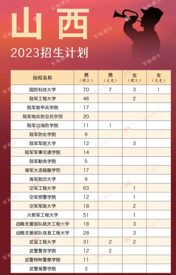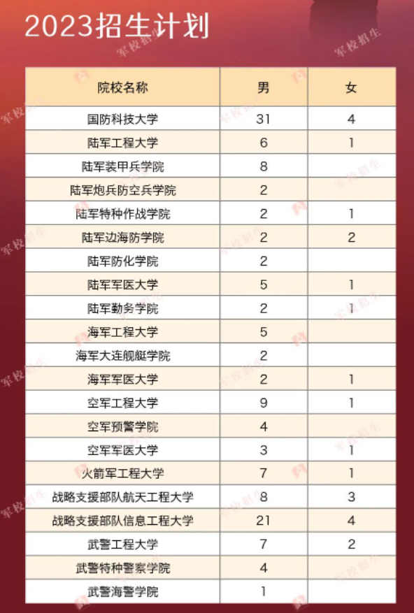 一、2023年高考军队院校招生计划全国44所汇总