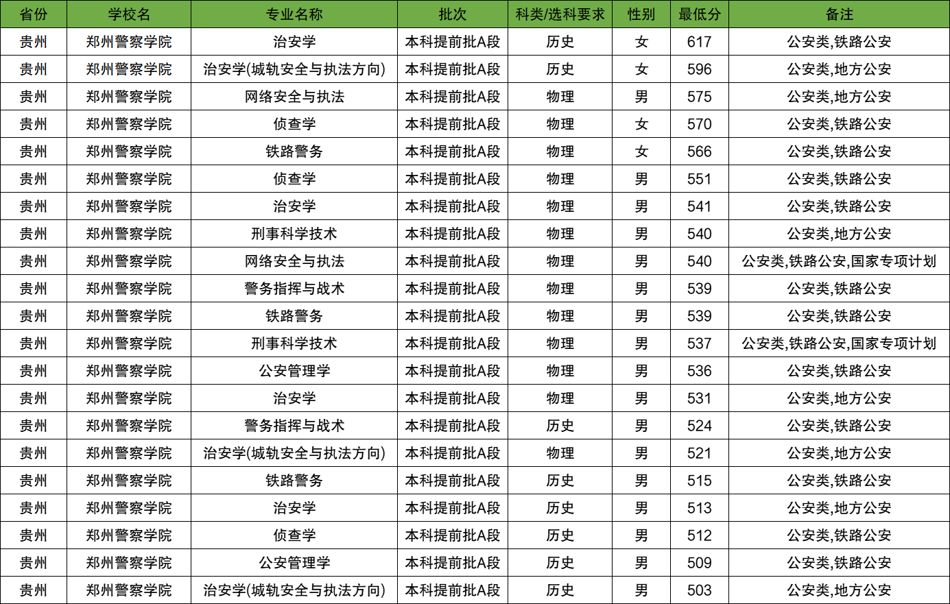 2025年郑州警察学院公安专业在贵州的录取分数线整理如下,供大家参考。