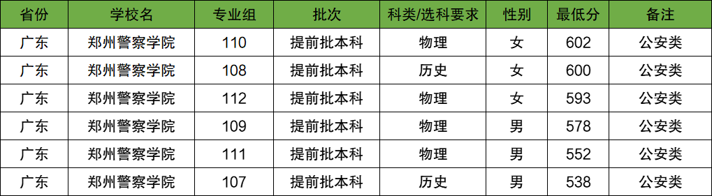 2025年郑州警察学院公安专业在广东的录取分数线整理如下,供大家参考。