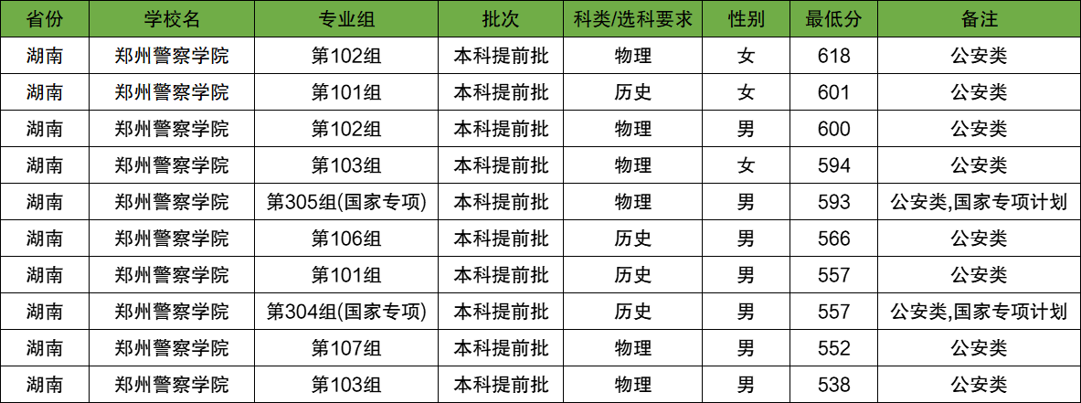 2025年郑州警察学院公安专业在湖南的录取分数线整理如下,供大家参考。