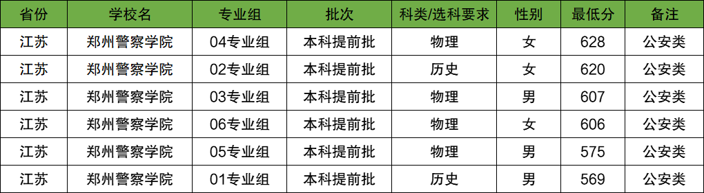 2025年郑州警察学院公安专业在江苏的录取分数线整理如下,供大家参考。