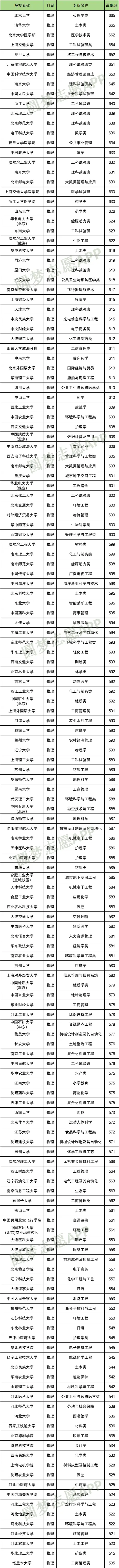 2024年在河北招收物理类考生的国家专项计划大学有159所,录取分数最低的院校是塔里木大学505分,对应专业为工商管理类;录取分数最高的院校是北京大学665分,对应专业为心理学类。
