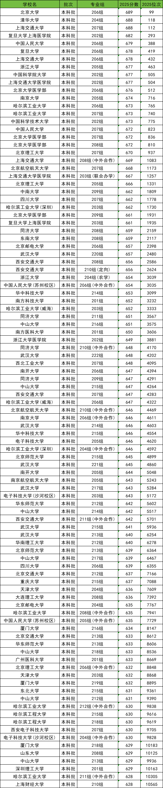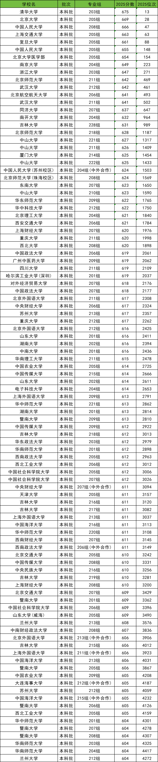 下面是2025年在广东省物理类录取分数线及位次排名前百强高校一览表(滑动查看):