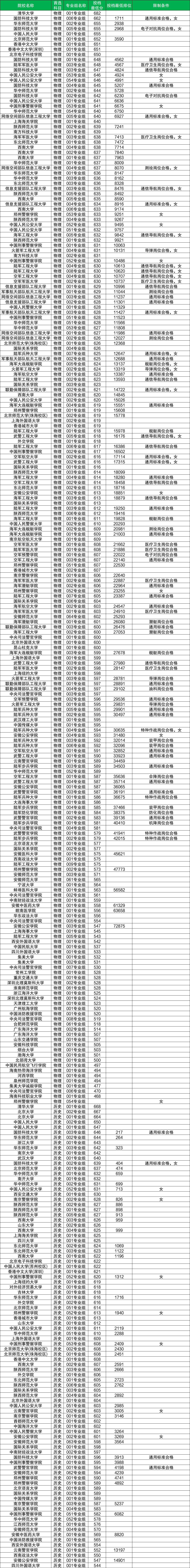 历史类:最低分503分(河北医科大学),最高分678分(北京大学)