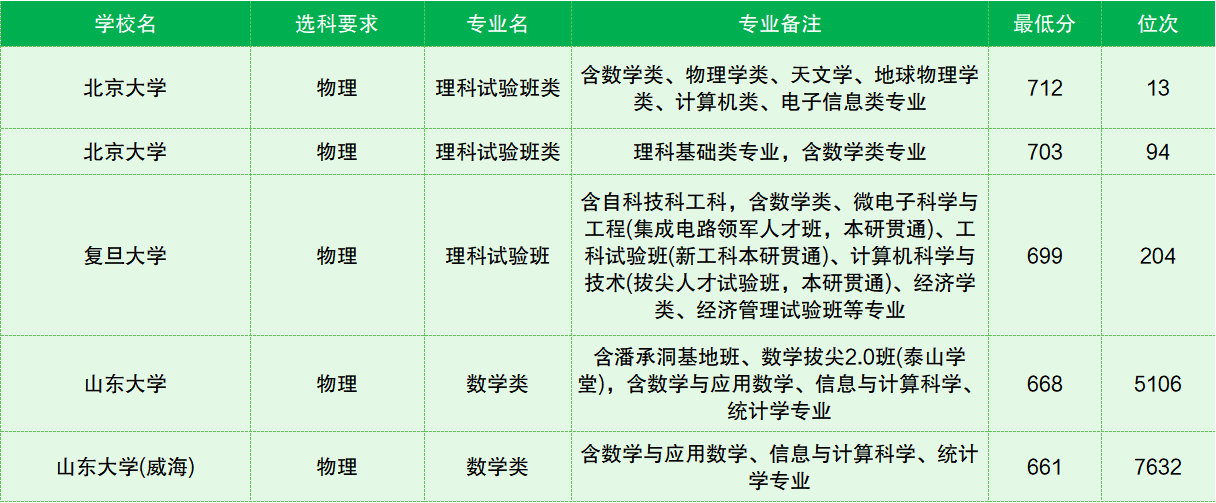 山东大学是这三所院校中收分最低的,特别是其威海校区的数学类最低分为661分,位次已经在全省7500名开外了。