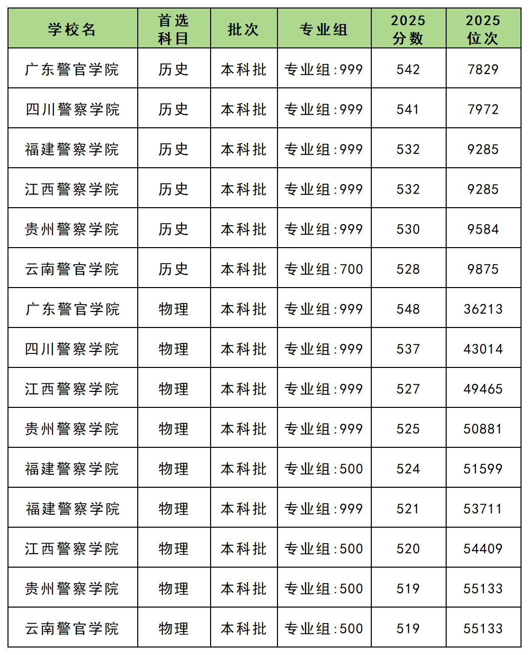 2025年二本警校排行榜已整理如下: