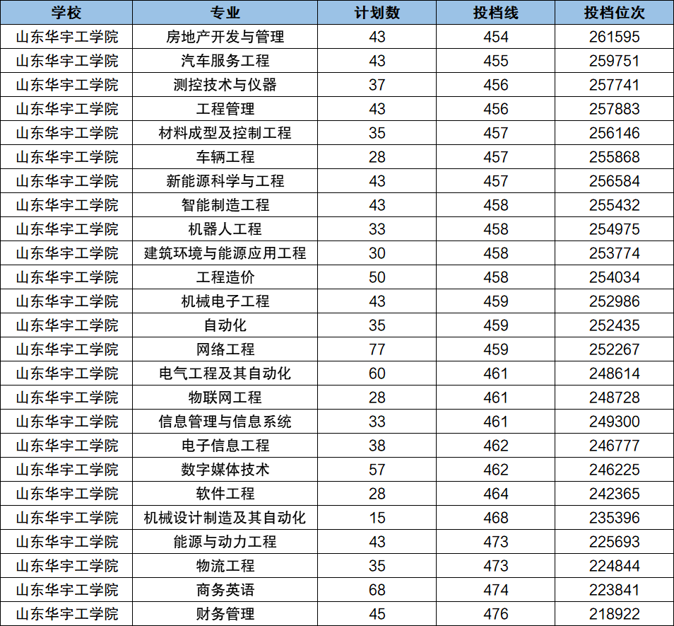 (4)山东华宇工学院(民办):454分;超一段线5分;