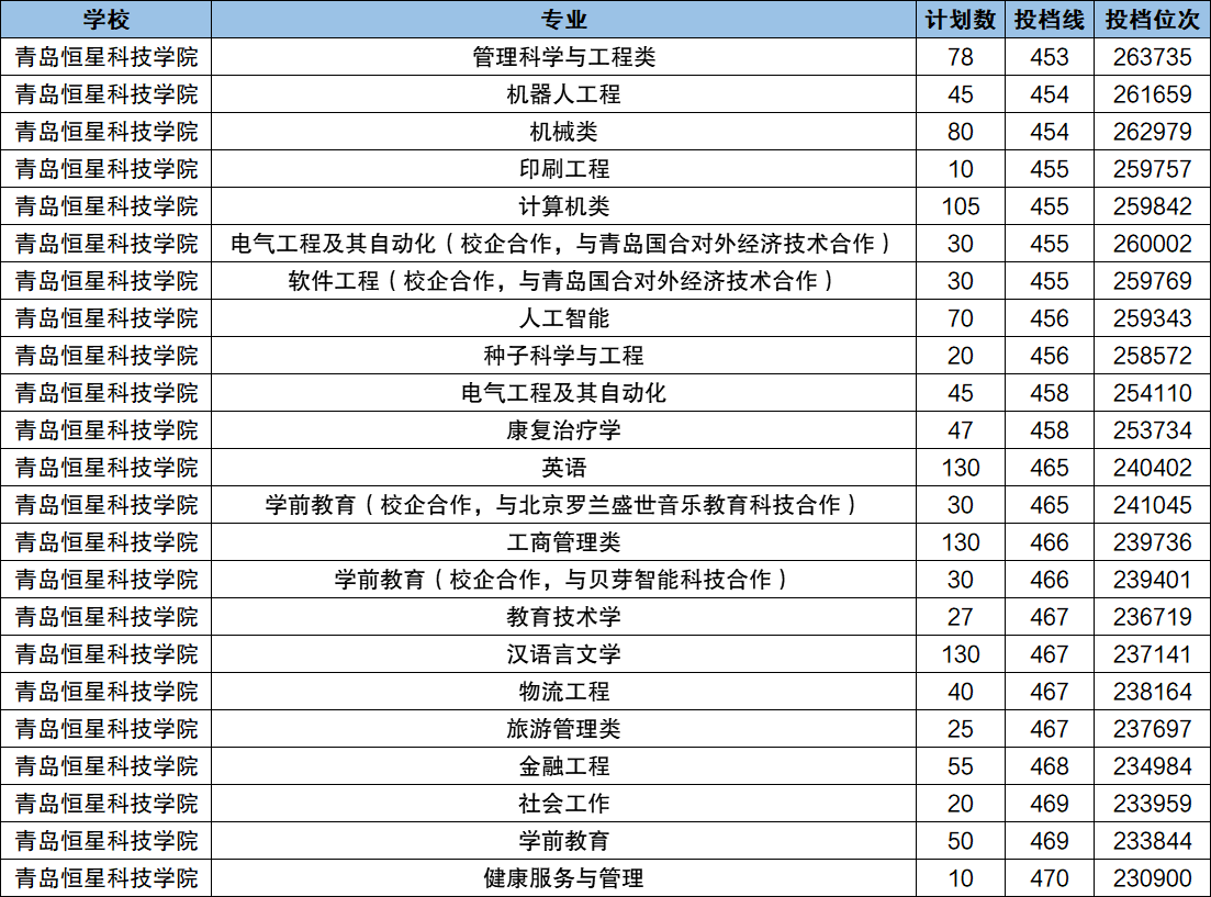 (2)青岛恒星科技学院(民办):453分;超一段线4分;