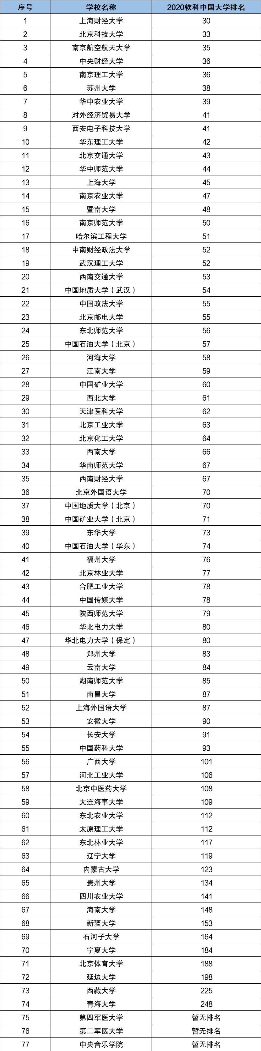 全国211大学名单剔除985高校之后还有76个,具体名单及其排名情况如下: