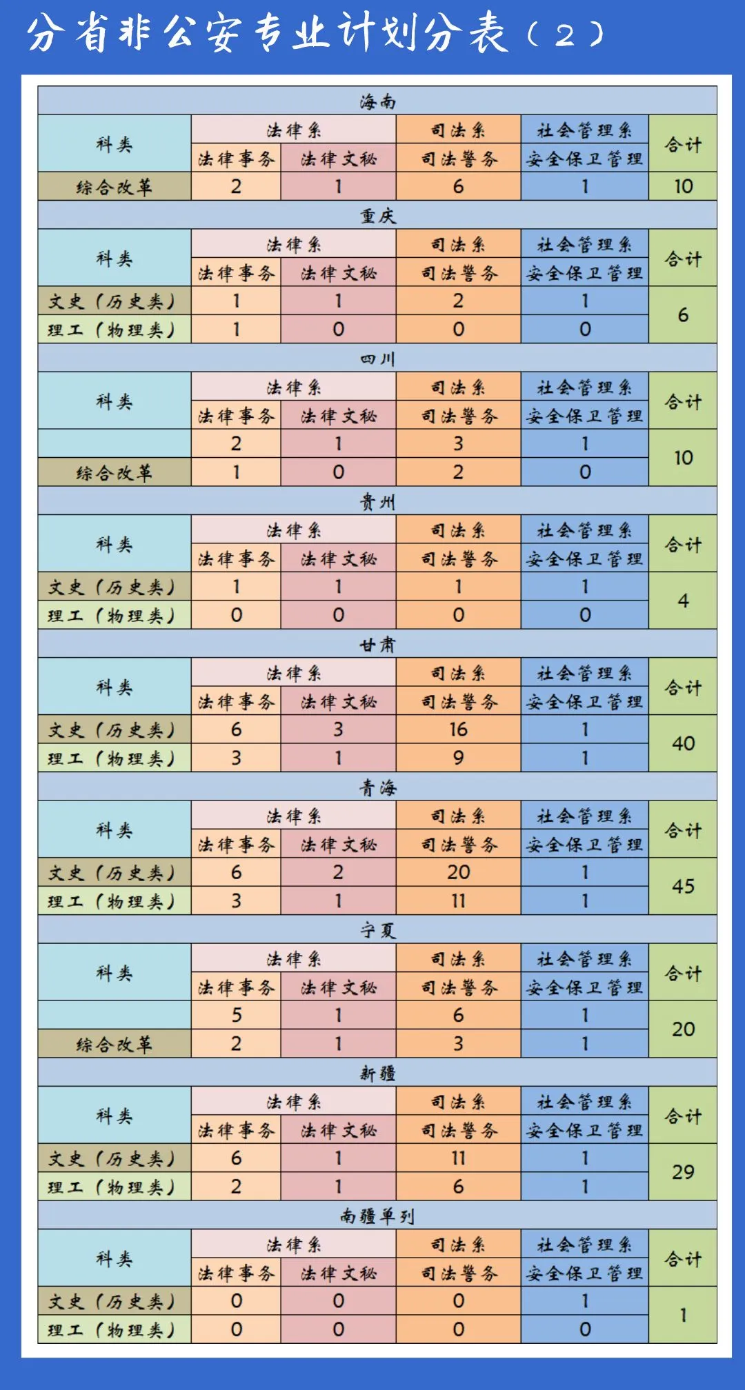 【培养目标】本专业以习近平新时代中国特色社会主义思想为指导,落实立德树人根本任务,培养理想信念坚定,德智体美劳全面发展,具有良好的警察职业素养、法律素养和人文素养,熟悉相关法律制度,掌握司法警务、治安管理专业知识及应用技能,能胜任基层司法警察、公安机关工作岗位需要的高素质实战型警务人才。