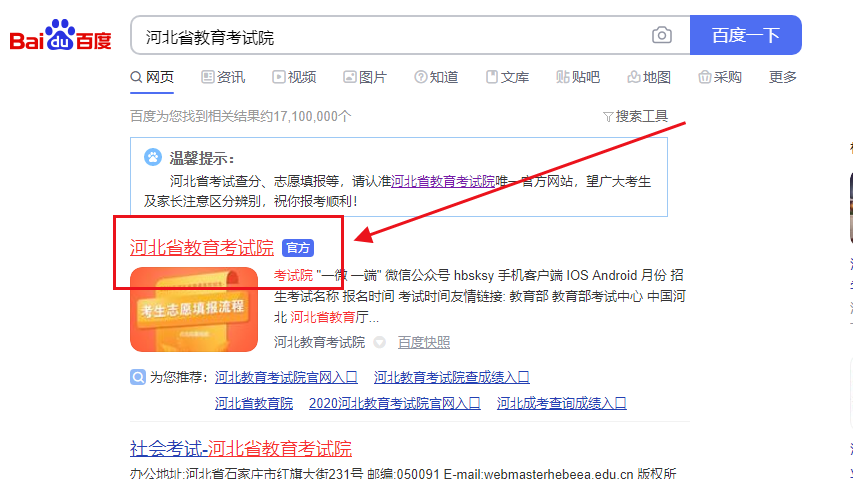 第一步:百度”河北省教育考试院“