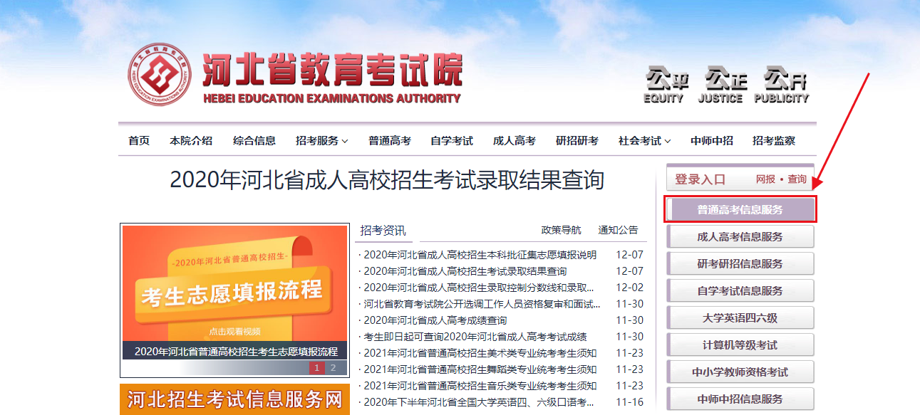 第二步:点击”普通高考信息服务“模块。
