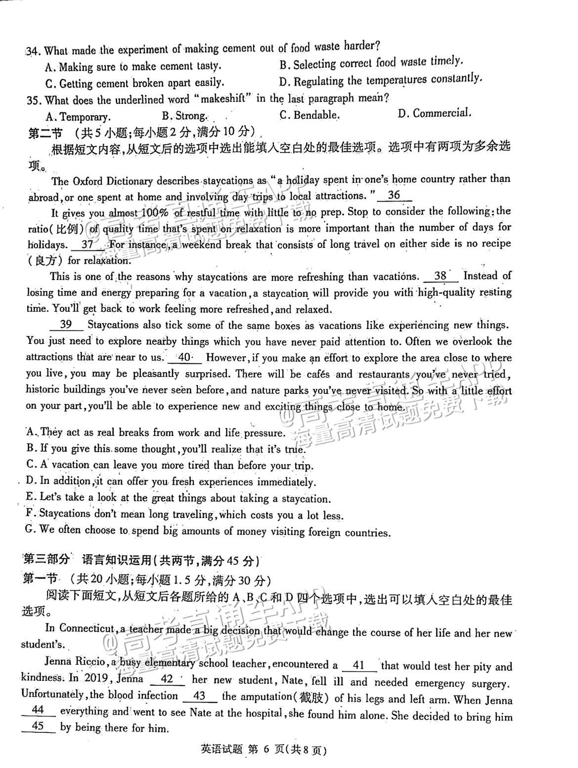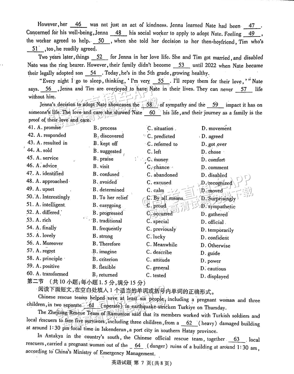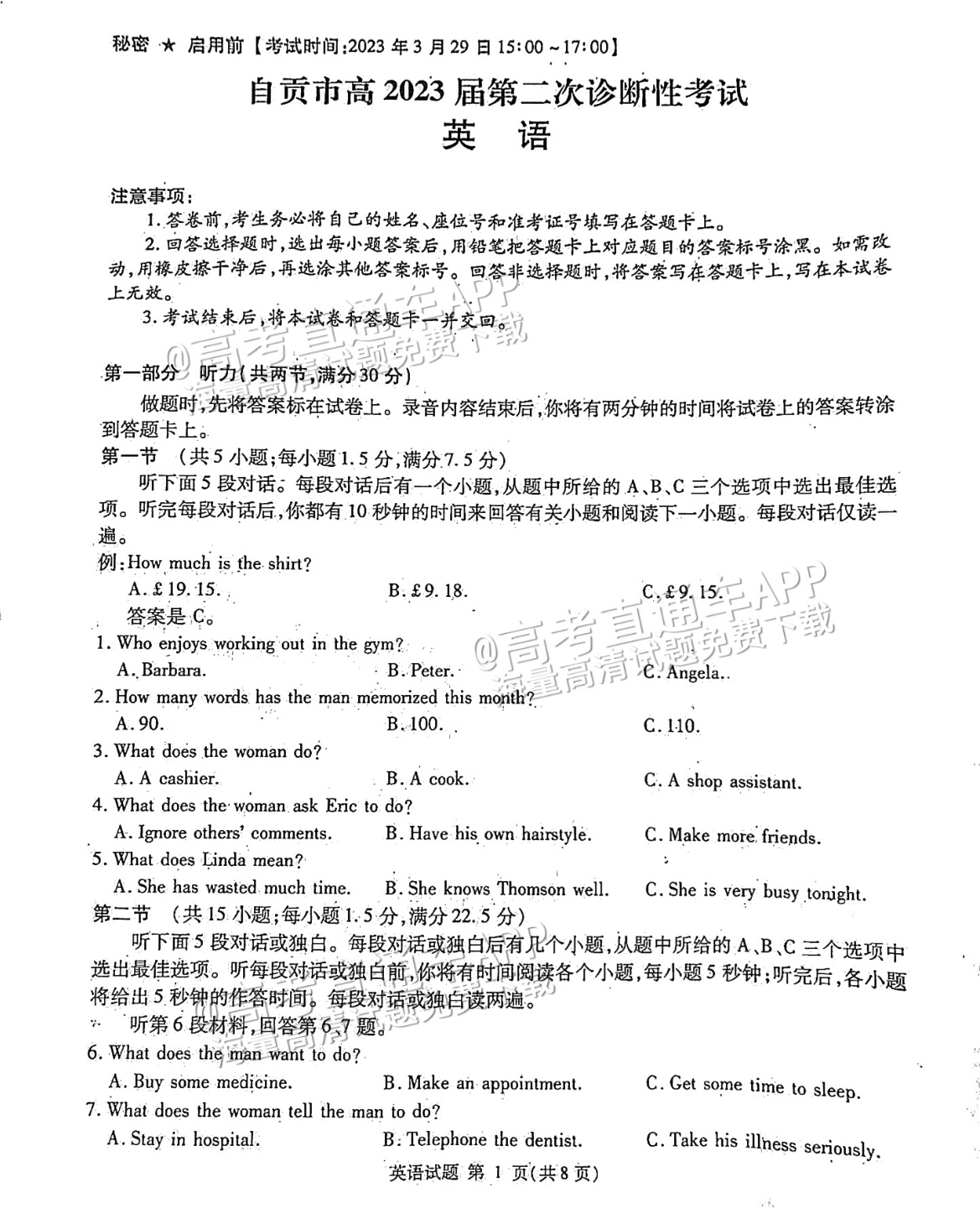 四川省九市2023年第二次诊断性考试是同学们很关注的考试,2023四川九市二诊安排在3月28日开考,本期将整理2023四川九市二诊英语试题及参考答案。希望同学们通过四川九市二诊2023英语答案及试题这份资料,及时知晓成绩!