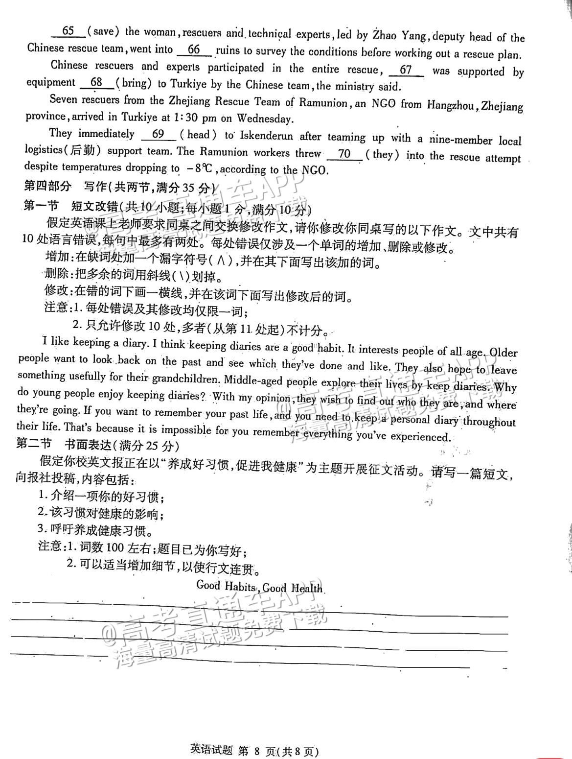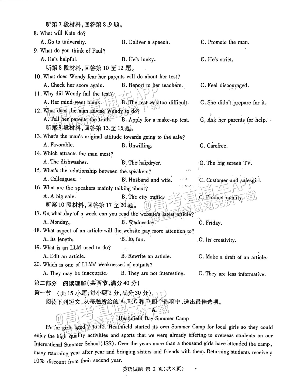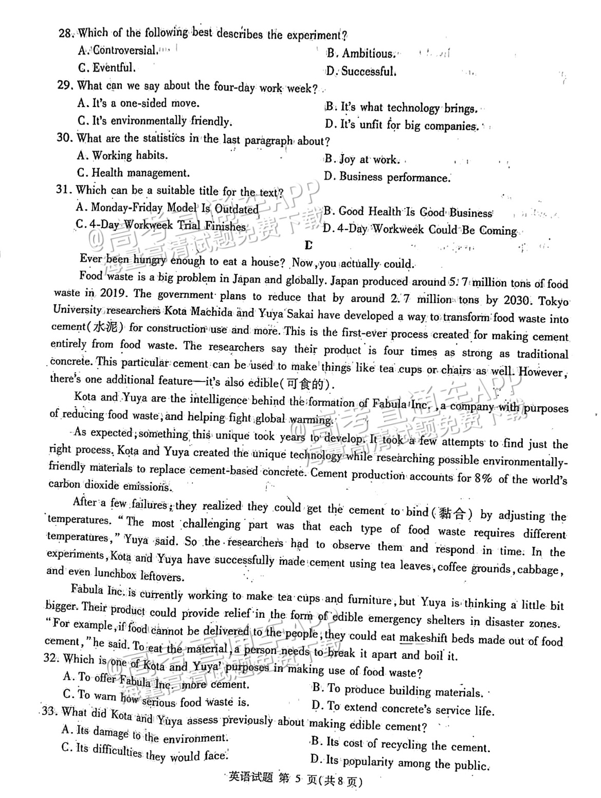 四川省九市2023年第二次诊断性考试是同学们很关注的考试,2023四川九市二诊安排在3月28日开考,本期将整理2023四川九市二诊英语试题及参考答案。希望同学们通过四川九市二诊2023英语答案及试题这份资料,及时知晓成绩!