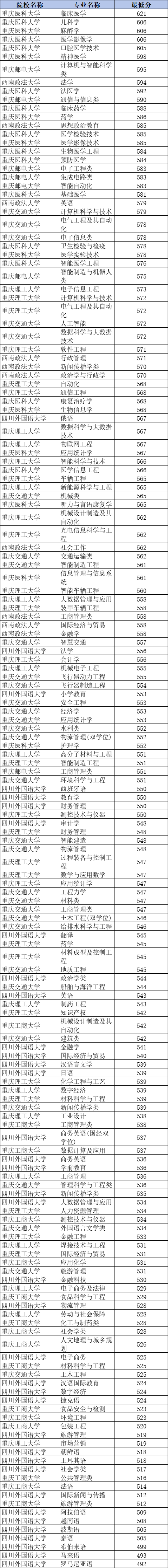 2024年地方专项计划各大学在重庆物理类分数线最高、最难考的一所院校及专业为:重庆医科大学临床医学(621分)、重庆医科大学儿科学(606分)、重庆医科大学麻醉学(606分)、重庆医科大学医学影像学(606分);