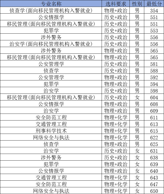 | 物理+政治 | 男 | 488 | 公安学类(地方) |