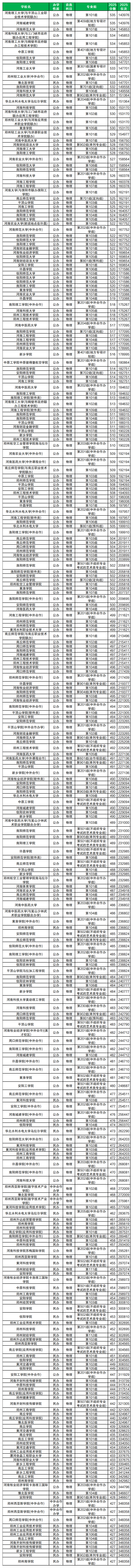 注:排名仅供参考,不是择校的唯一标准。下面附上2025年河南省二本大学在省内物理类招生的录取分数线情况,新高考年度取特控线以下的非双一流本科大学为二本大学,以供参考。