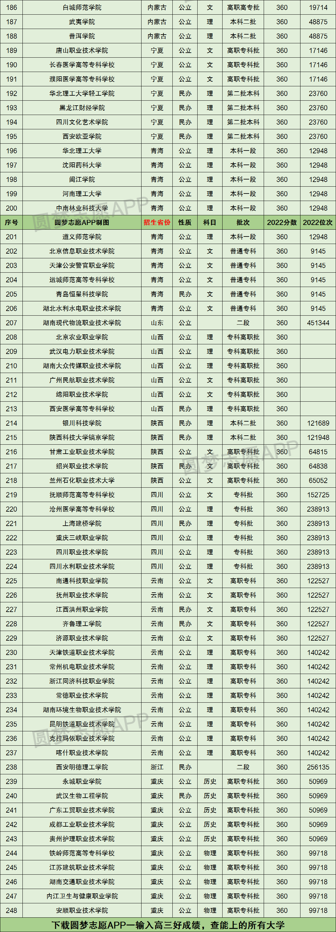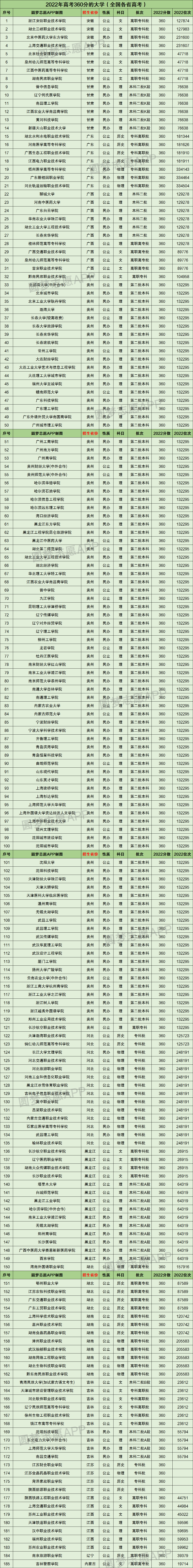 因此我们为大家整理下列省份录取分为360分的学校名单: