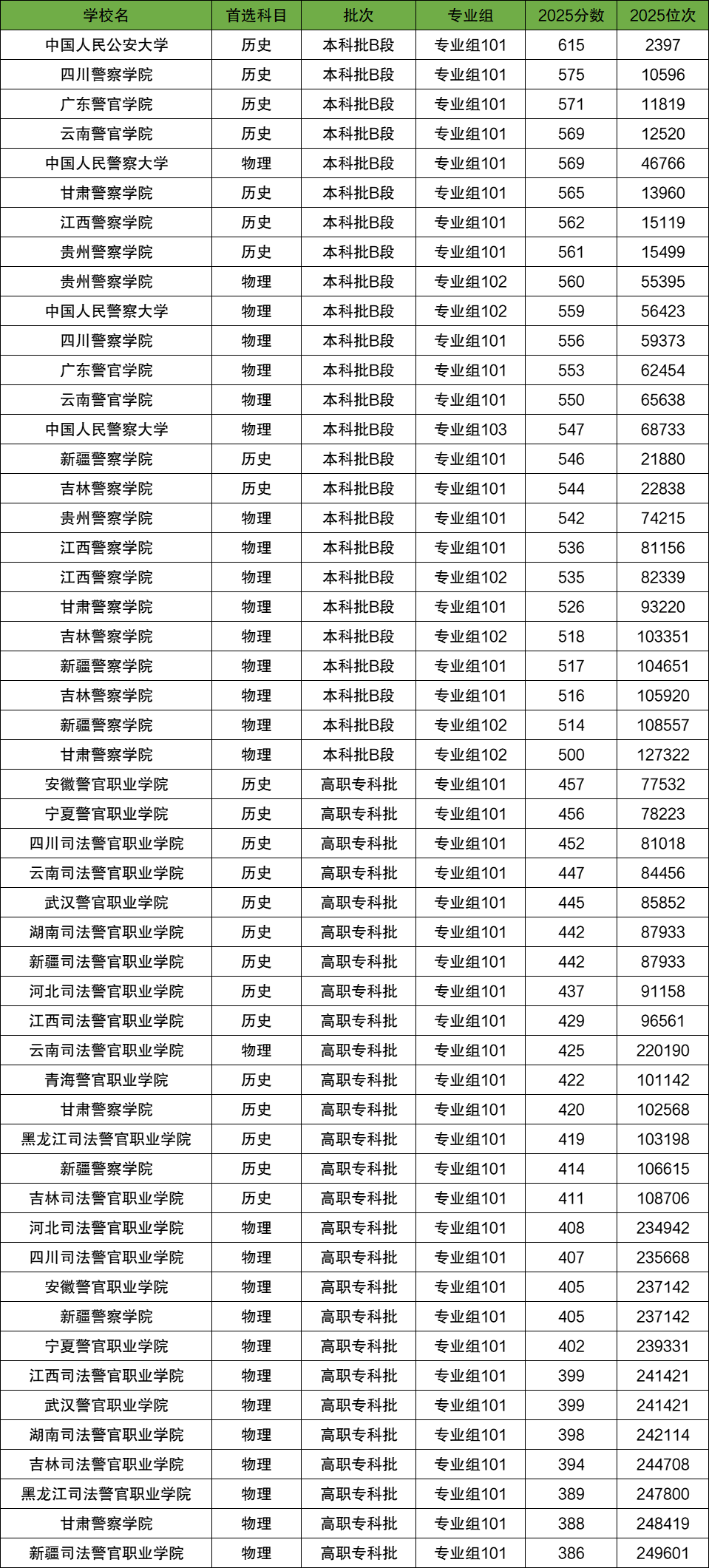 同时也有一批没有在提前批招生警校在普通批进行招生,比如吉林警察学院、新疆警察学院等;相应的提前批次的警校中也有没在普通批招生的院校,如中国刑事警察学院、中央司法警官学院。