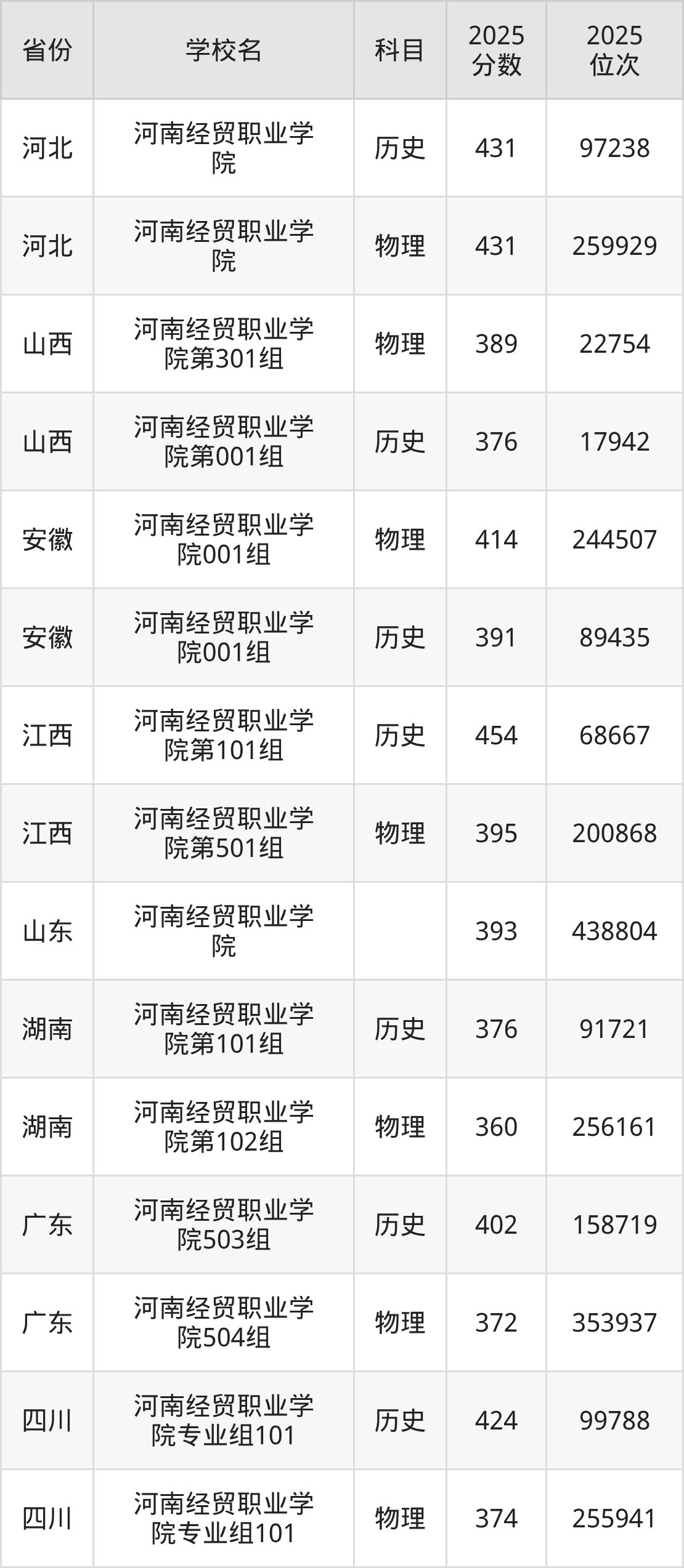 下面是河南经贸职业学院2025年录取分数线各省汇总,一起来了解下吧。