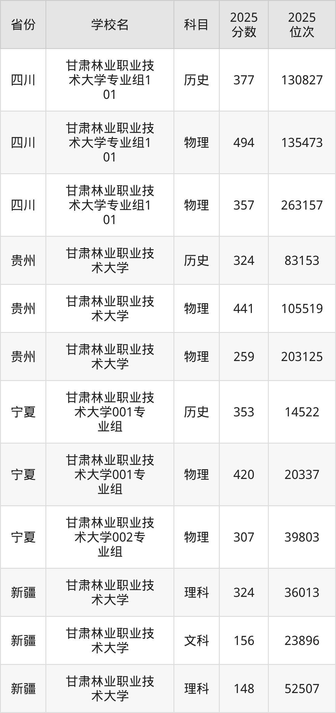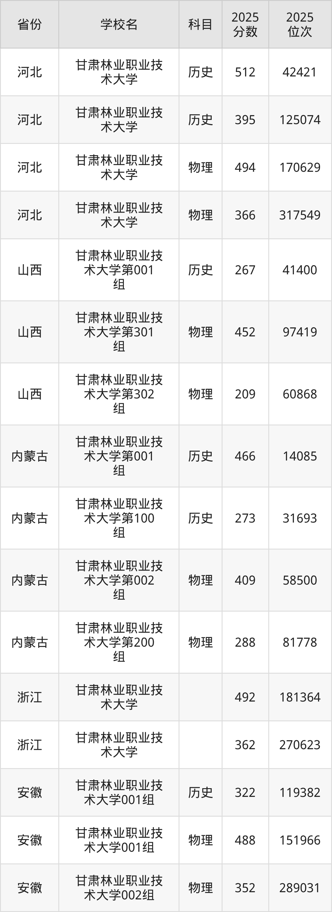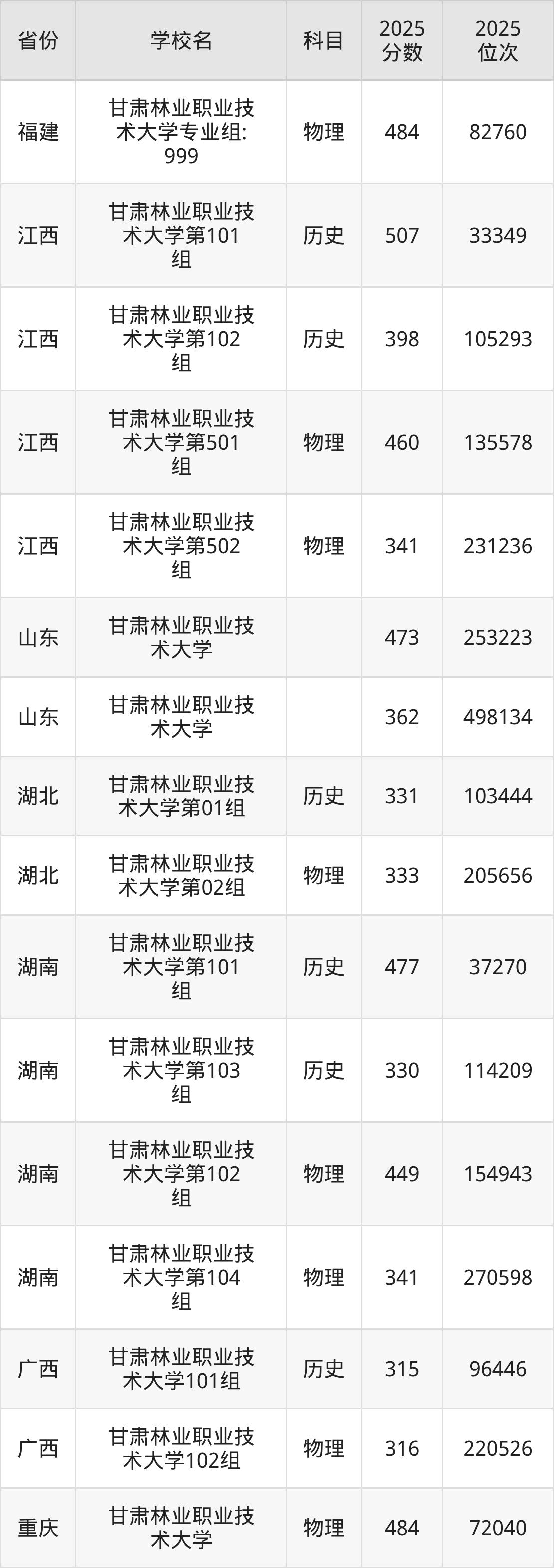 下面是甘肃林业职业技术大学2025年录取分数线各省汇总,一起来了解下吧。
