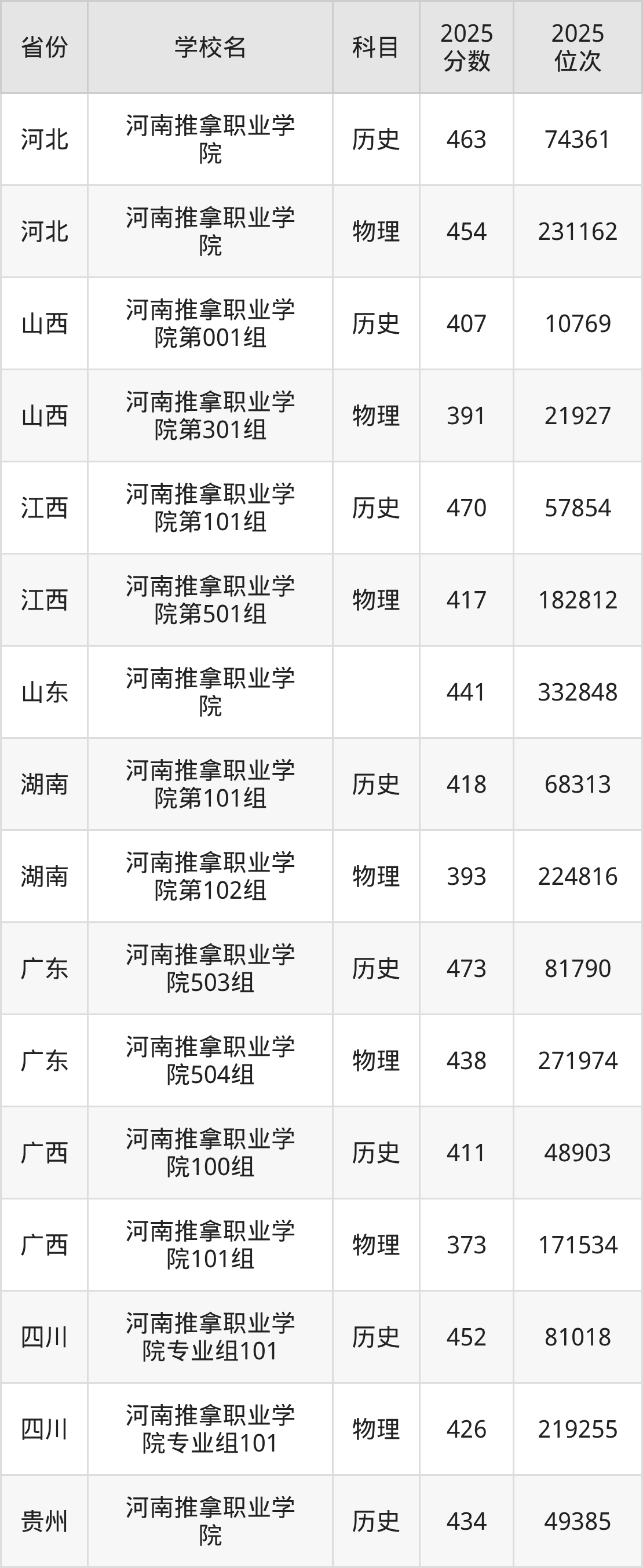 下面是河南推拿职业学院2025年录取分数线各省汇总,一起来了解下吧。