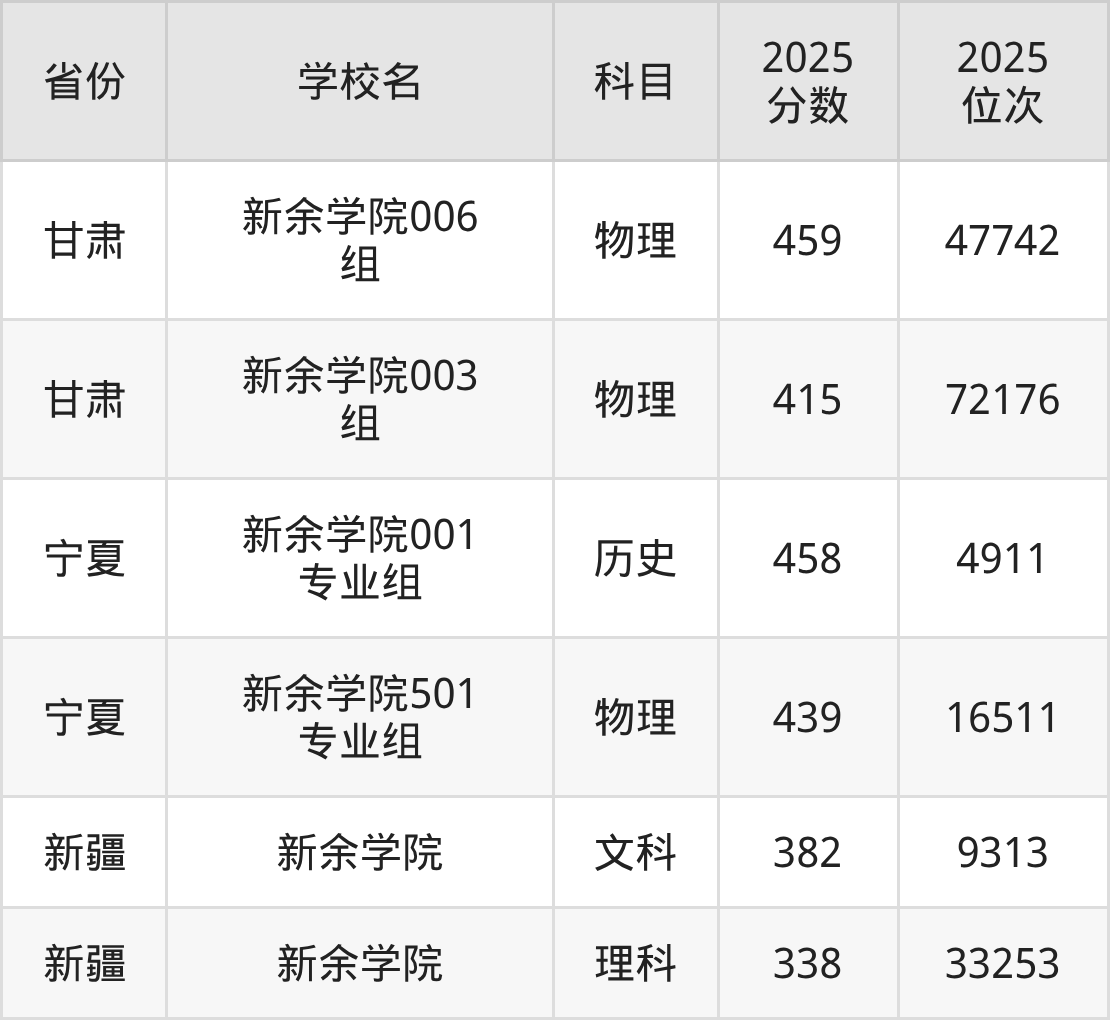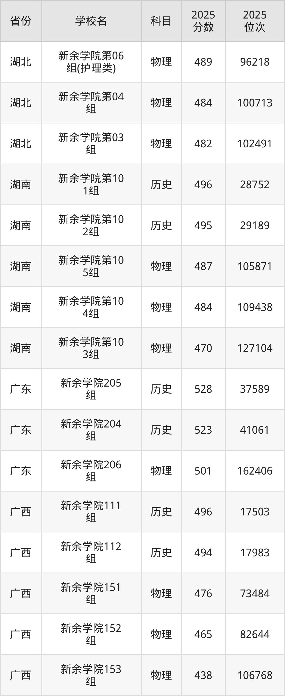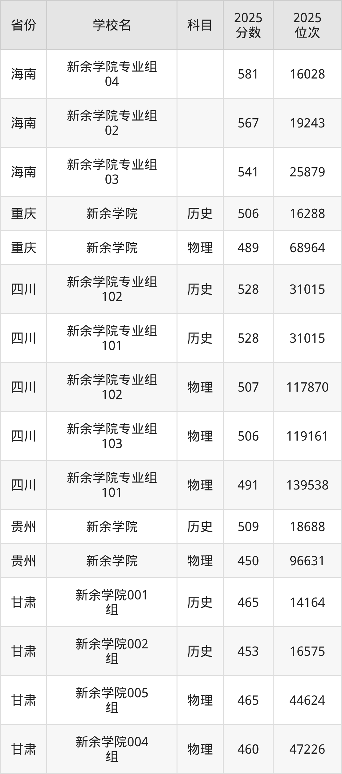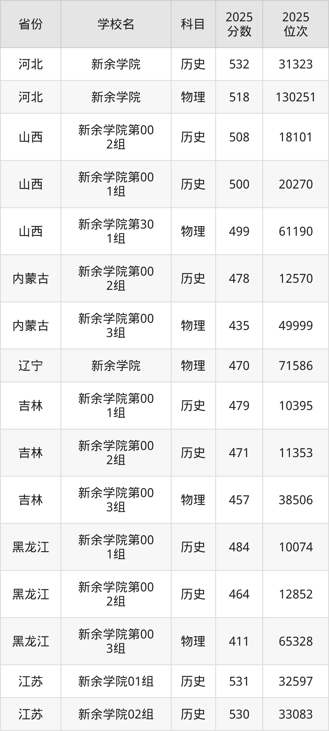 2025年新余学院在省内分历史物理科目类录取,其中历史类最低分是516分、对应位次是27918名;物理类最低分是470分,对应位次是122516名。