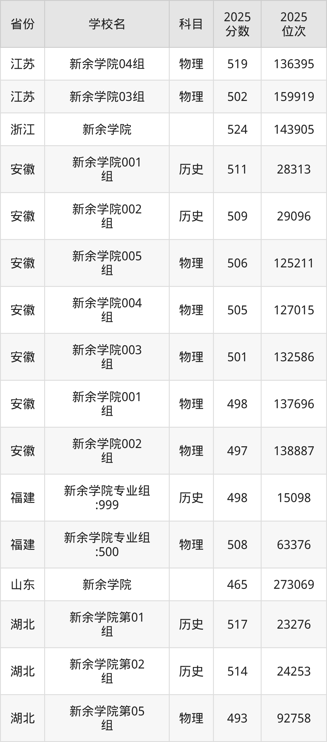 2025年新余学院历史类最低分516分(27918名)、物理类最低分470分(122516名)。