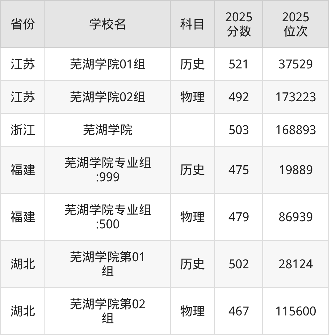 2025年芜湖学院历史类最低分500分(33418名)、物理类最低分483分(159054名)。