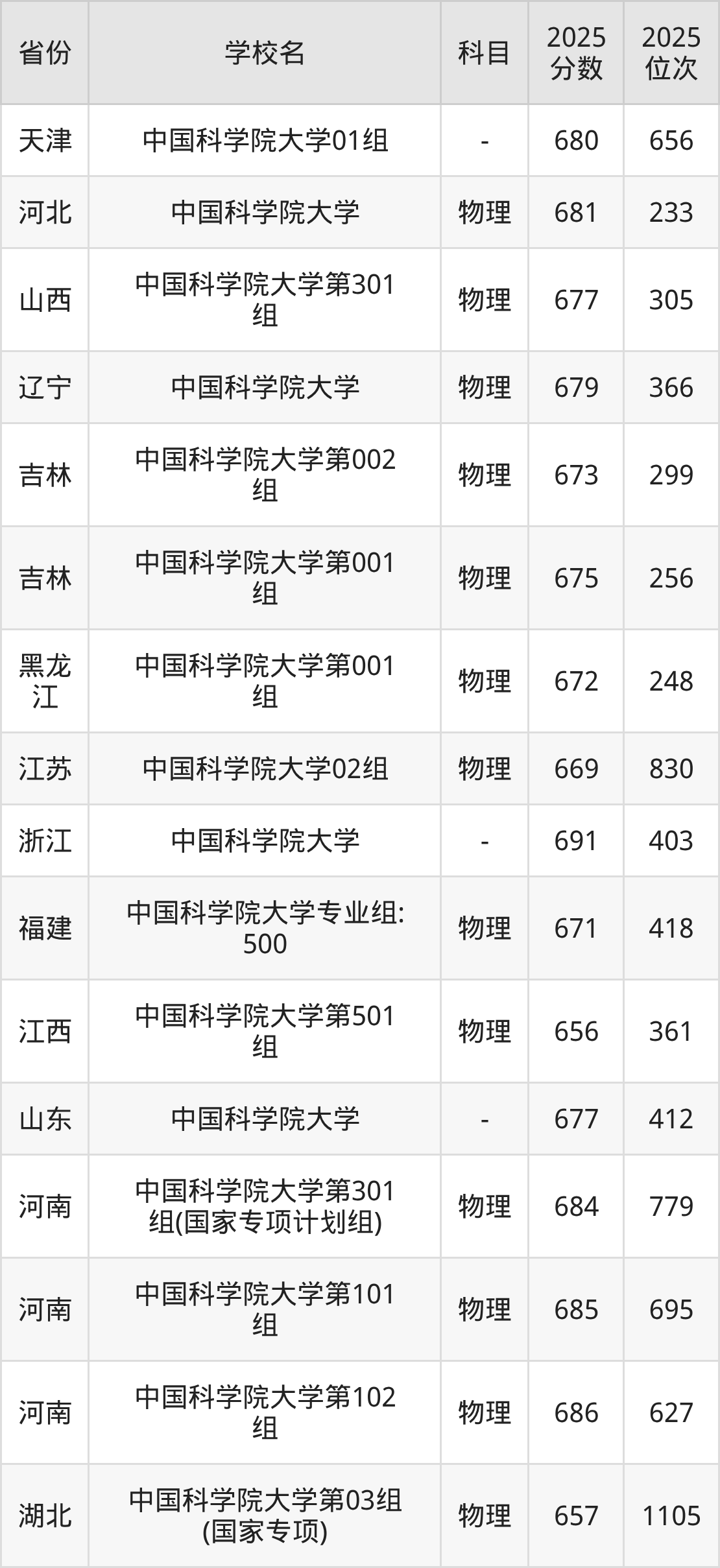 | 中国科学院大学 01组 | 680 | 685 |