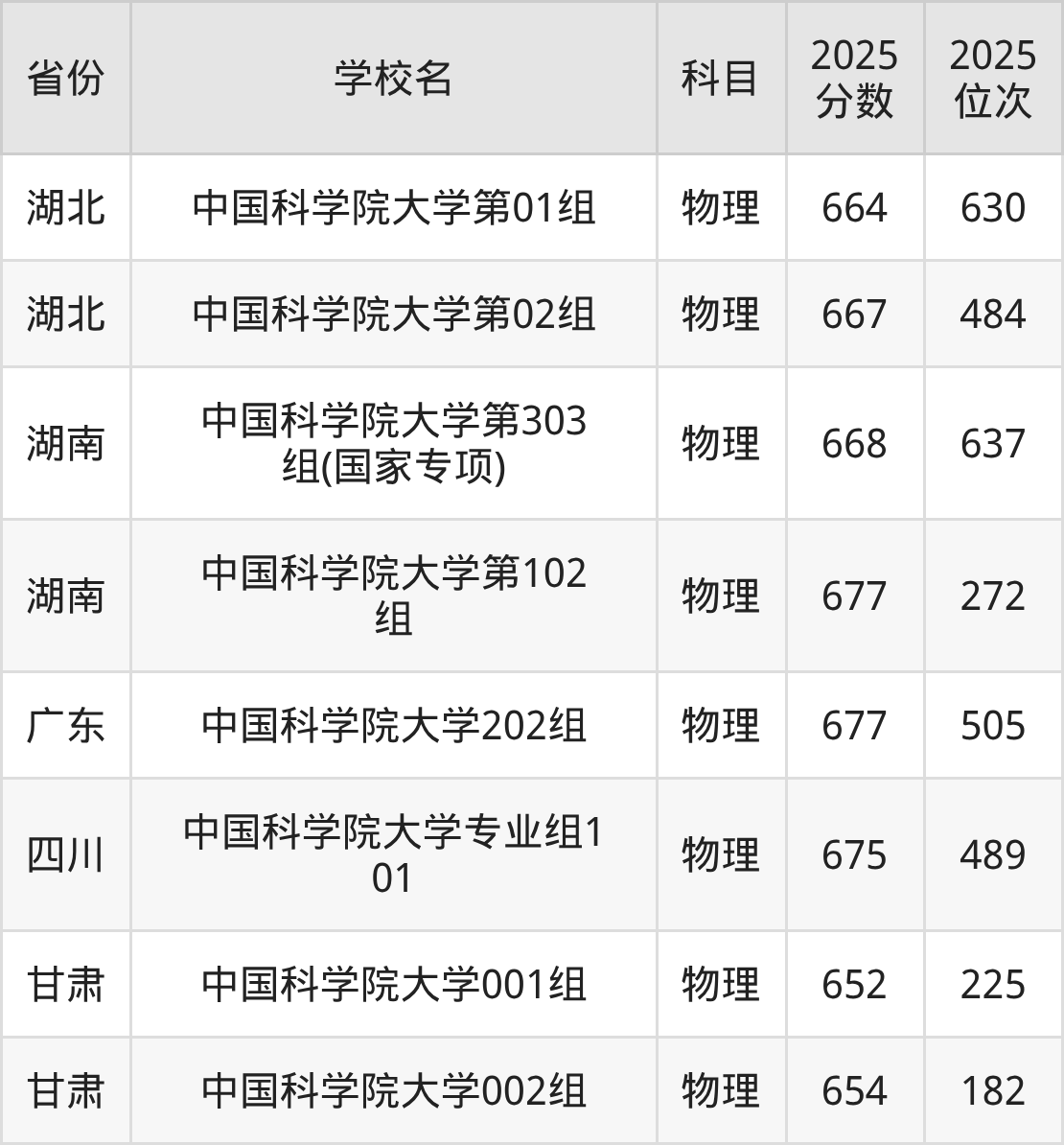 2025年中国科学院大学在市外录取分数线范围整体位于652分到691分之间,录取分数线最低在甘肃物理(001组)、录取分数线最高在浙江。