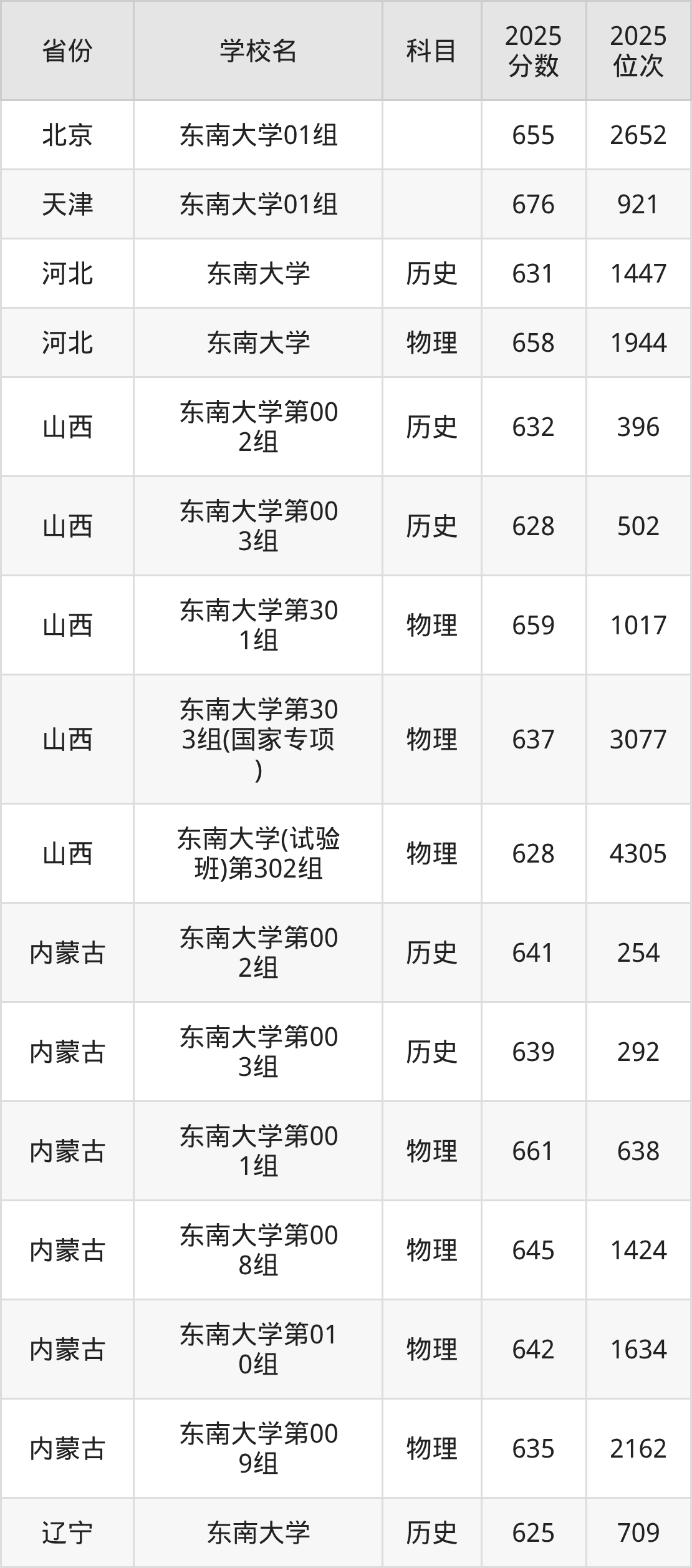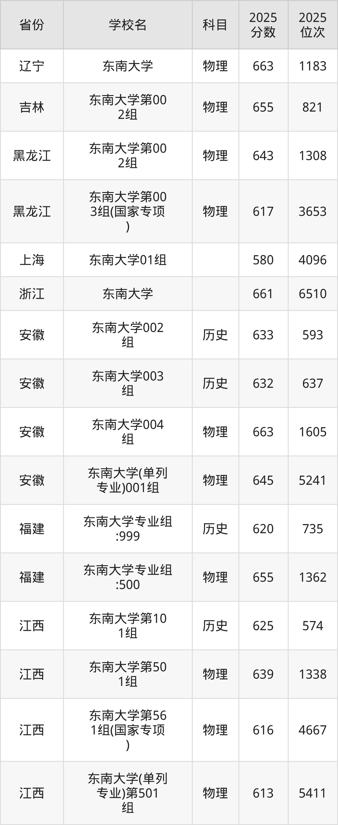 下面是东南大学2025年录取分数线各省汇总,一起来了解下吧。