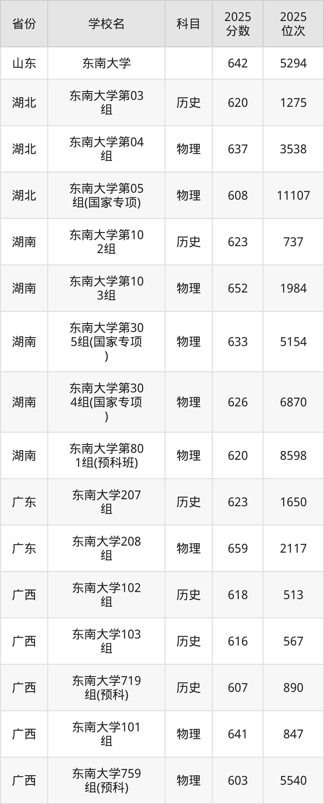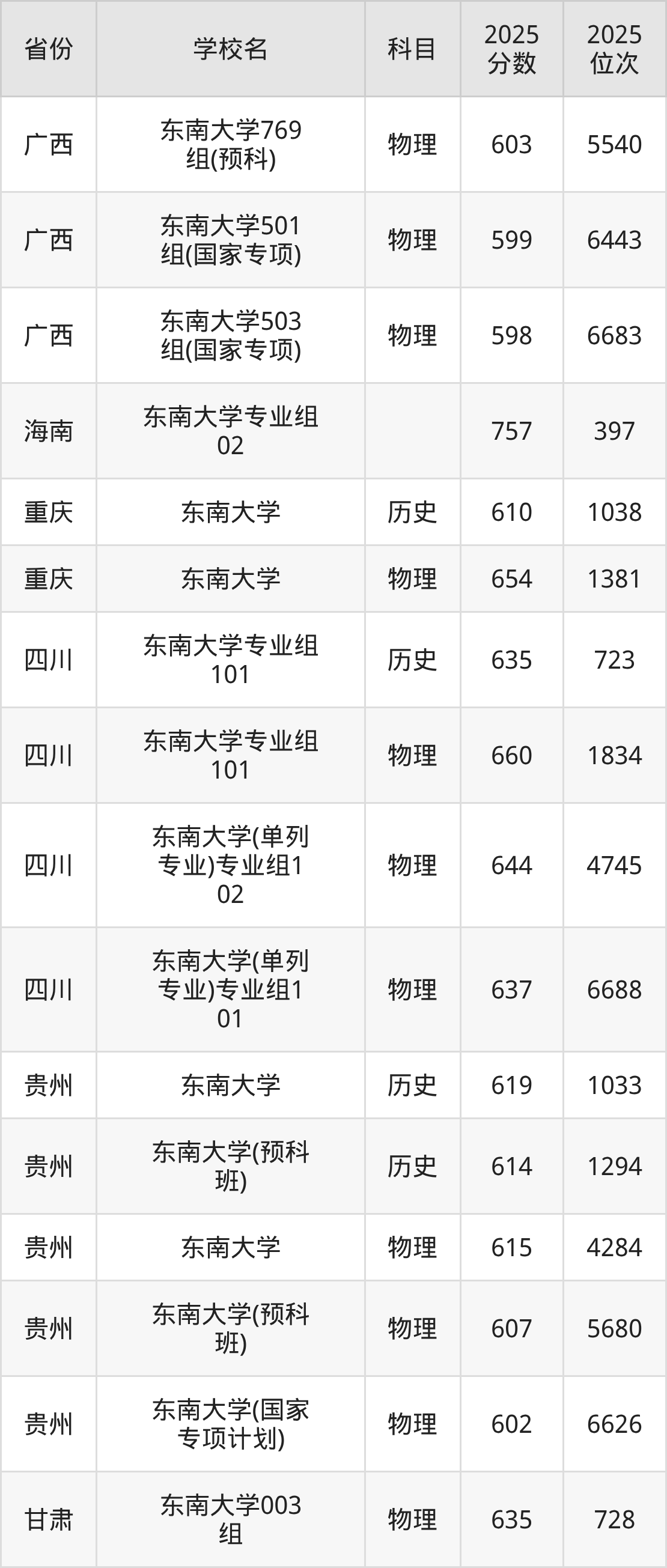 2025年东南大学在省内分历史物理科目类录取,其中历史类最低分是636分、对应位次是828名;物理类最低分是644分,对应位次是6362名。