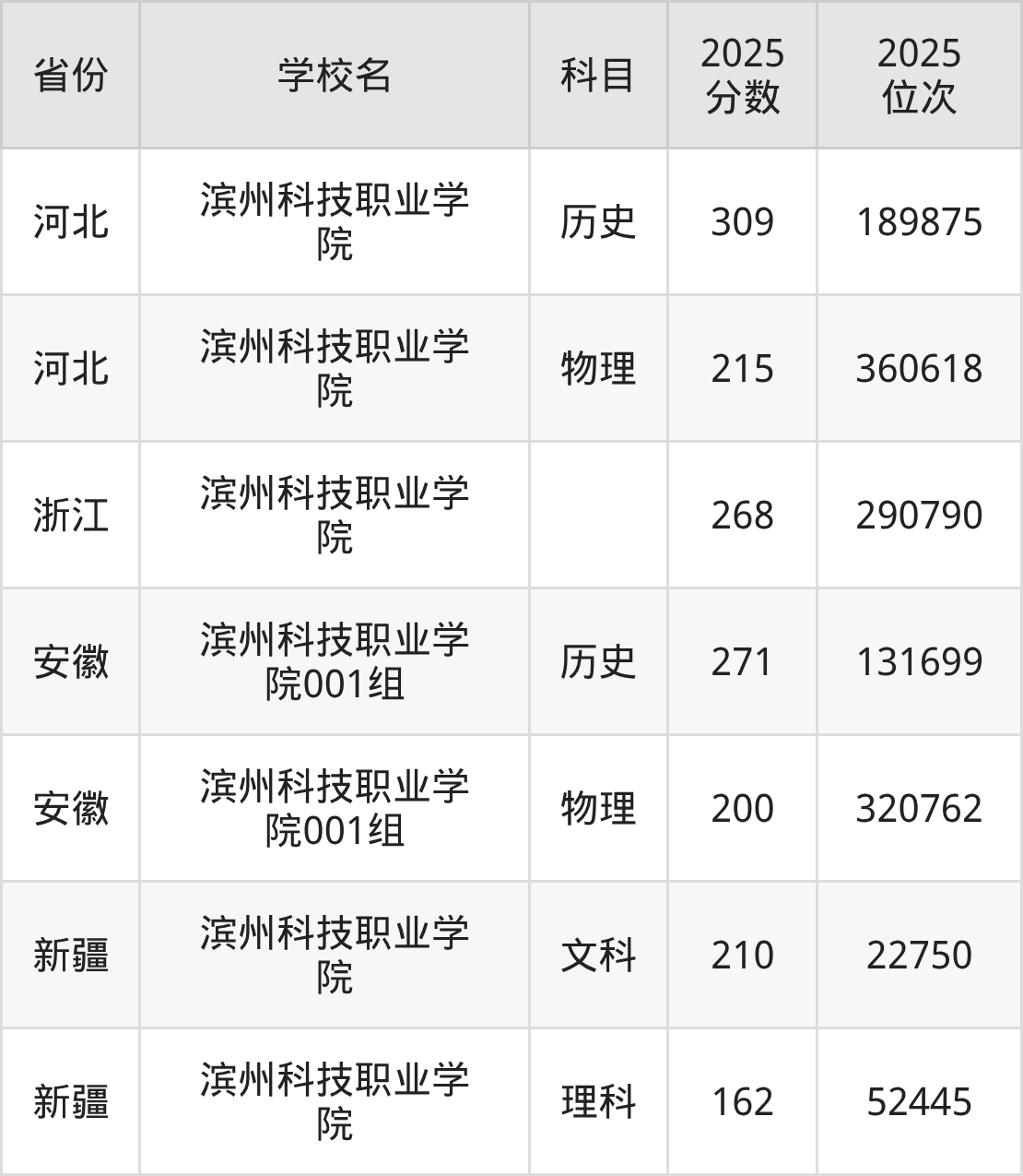 下面是滨州科技职业学院2025年录取分数线各省汇总,一起来了解下吧。