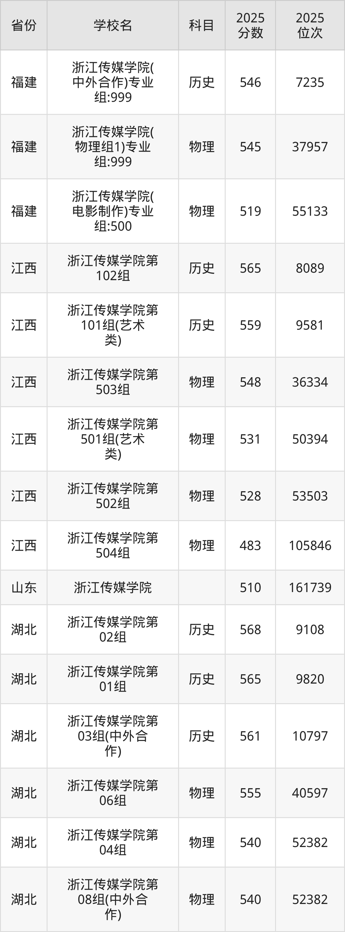 下面是浙江传媒学院2025年录取分数线各省汇总,一起来了解下吧。